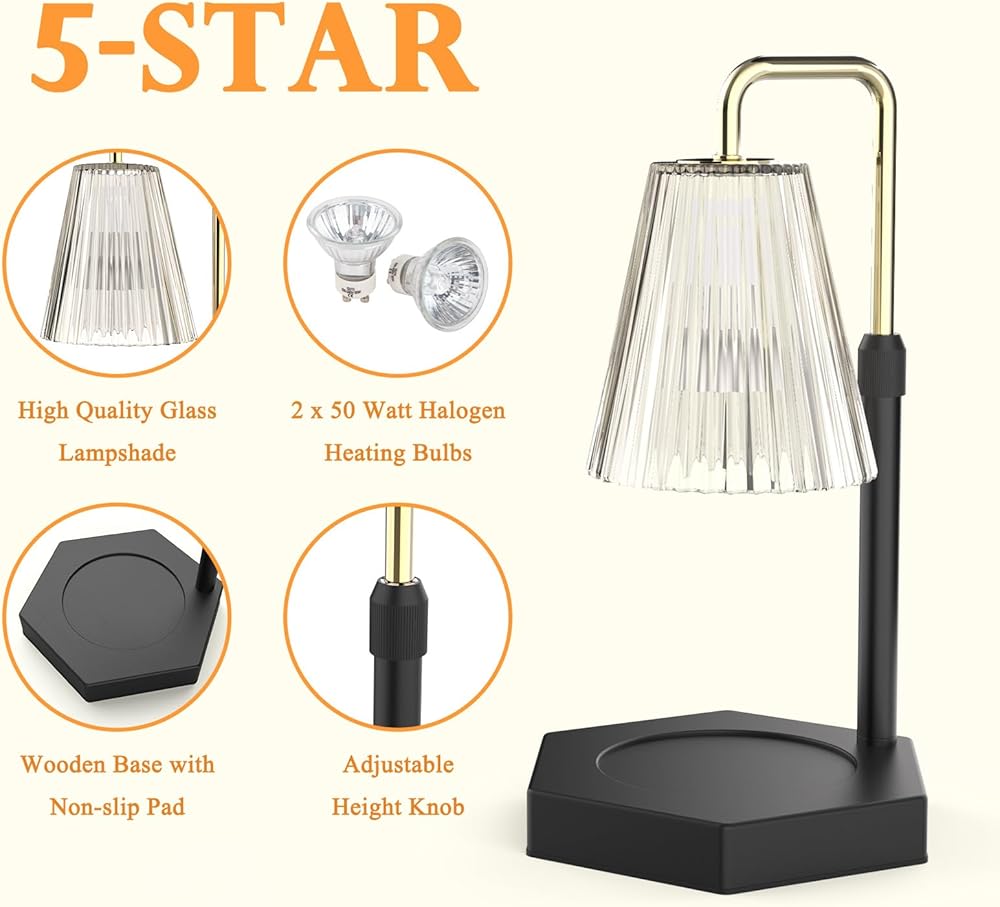 سخان شموع آمن وصديق للبيئة: يقوم مصباح تدفئة الشموع بتسخين الشموع عن طريق لمبة الهالوجين التي ترتفع إلى الأعلى للسماح للشمعة بالذوبان وملء الغرفة بالرائحة. عدم وجود لهب مفتوح يعني عدم وجود لهب أو دخان أو سخام أو تلوث.