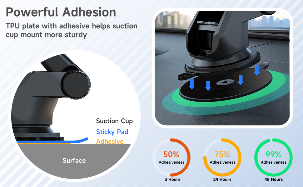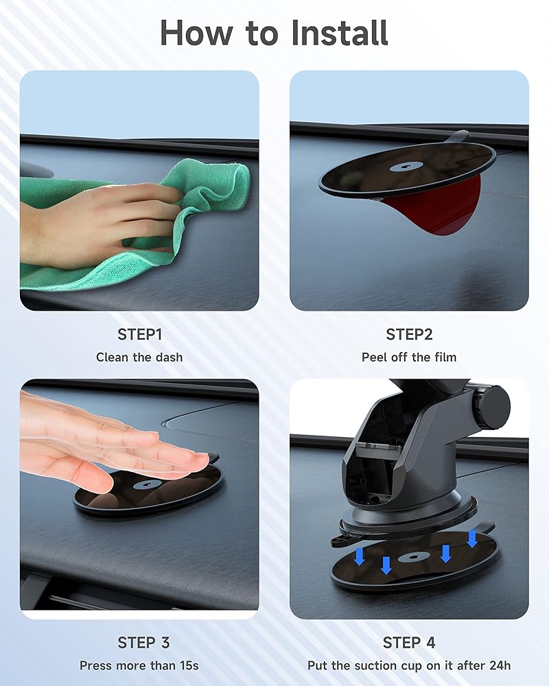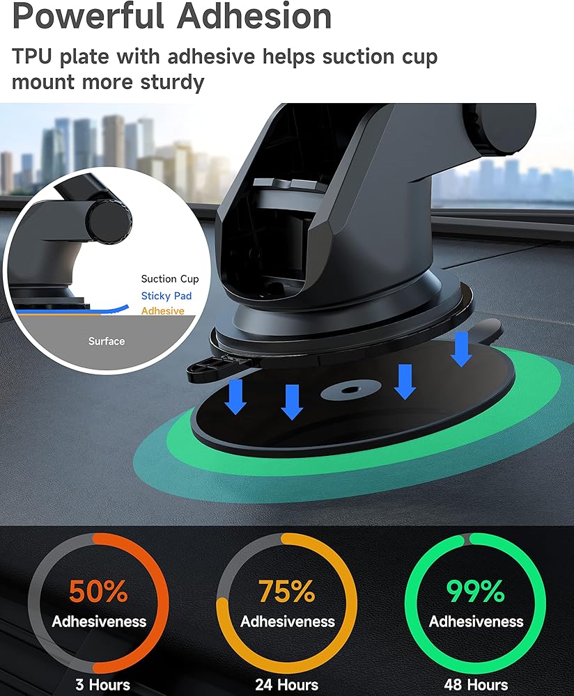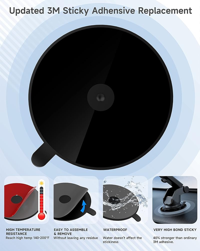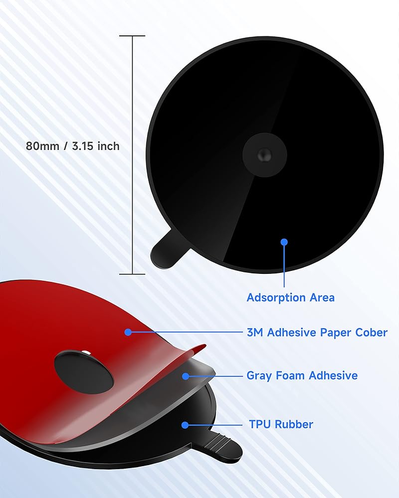 رحلة آمنة - السطح المنسوج السفلي اللاصق من إسفنج البولي إيثيلين المثبت على لوحة القيادة، مما يوفر أسطحًا ناعمة تشبه الزجاج لقواعد تثبيت كوب الشفط في السيارة للعمل بشكل أكثر فعالية. لا داعي للقلق بشأن سقوط حامل الشفط أثناء القيادة.