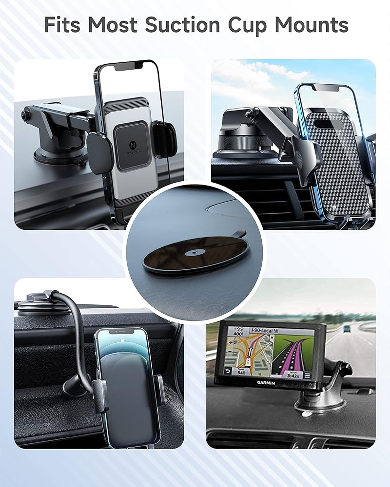توافق عالمي - تتوافق لوحة القيادة اللاصقة هذه مع جميع حوامل شاحن السيارة اللاسلكية ZEEHOO Dashboard Suction Cup وحوامل الهواتف الأخرى في الأسواق، وGarmin، وقواعد تثبيت TomTom GPS، ونماذج تزيين لوحة أجهزة القياس في السيارة.