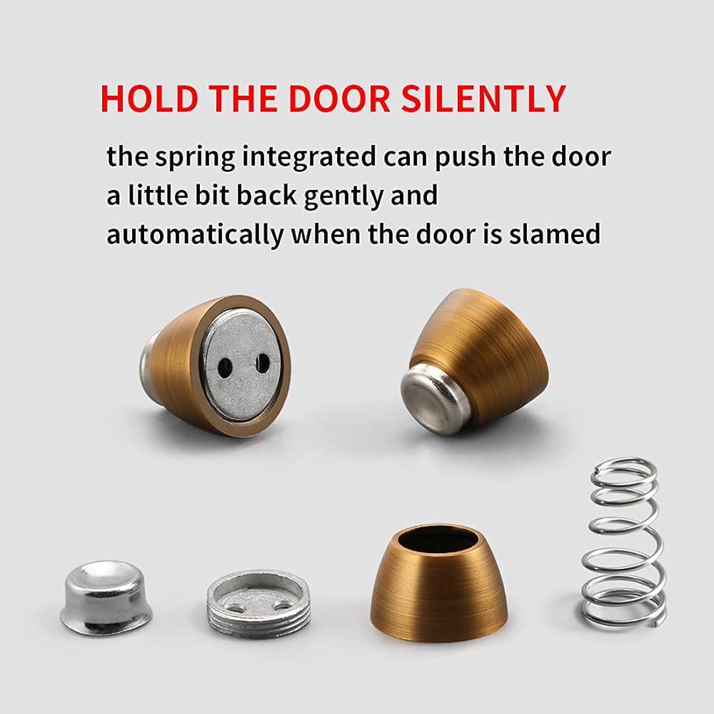 【تمنع الضرر】سدادات الأبواب المغناطيسية تمنع الباب من الانزلاق من خلال تقنية باب البطاقة الناعمة. السدادات مجهزة بعازل زنبركي جميل، يمكنه امتصاص القوة المفرطة لإغلاق الباب، ويوفر حماية أفضل للجدار، ويمنحك راحة البال.