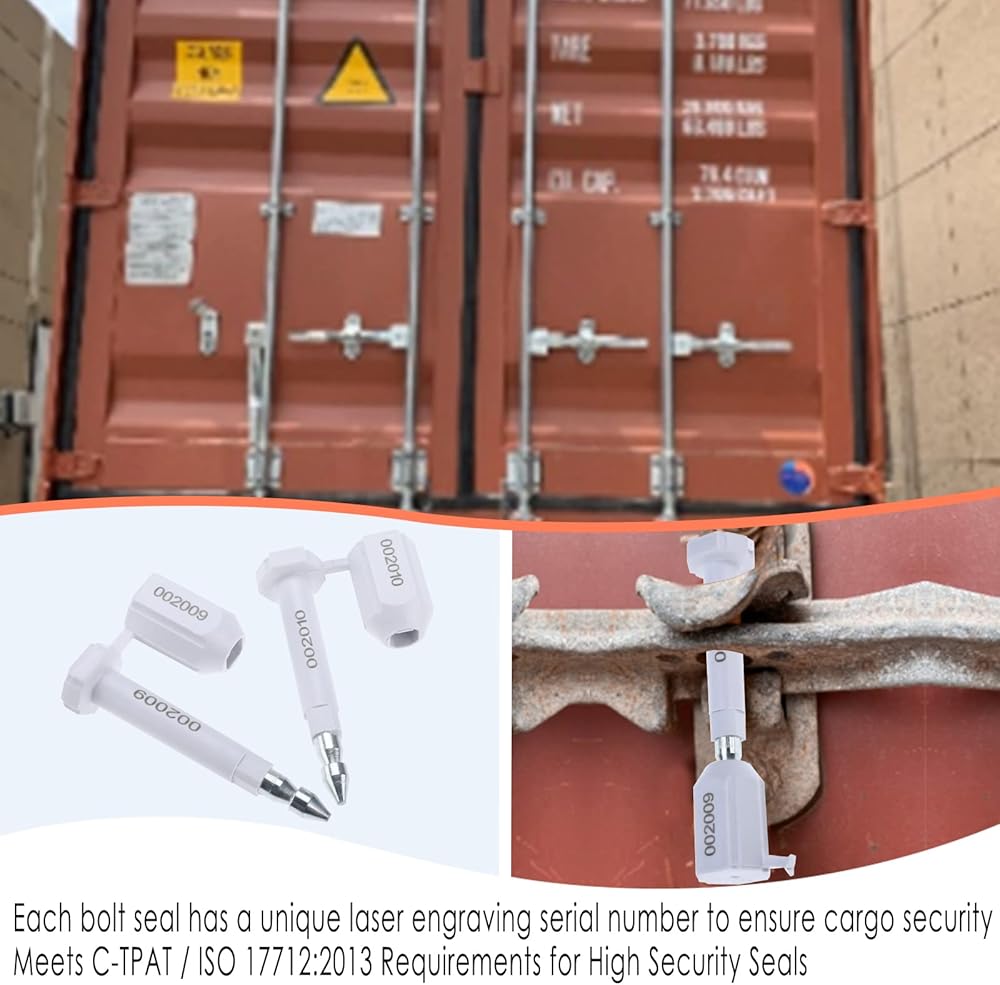 The Bolt Seal are used for securing truck trailers and cargo containers. These bolt seals are designed as a one-time use product which means once the seal has been locked it must be removed by destroying the seal. Each bolt seal features a unique laser engraved serial number on both the bolt shaft and the locking mechanism. The Bolt Seal feature an anti-spin feature which provides added security to prevent un-authorized entry and tamper evidence. These bolt seals also feature a unique metal-on-metal interlocking mechanism for added cargo security. These seals are C-TPAT compliant and meet the new design and construction standards of ISO 17712:2013. With a longer bolt shaft and wider bolt head it accommodates a wider variety of truck trailer and cargo container doors and provides better access with bolt cutters for removal.