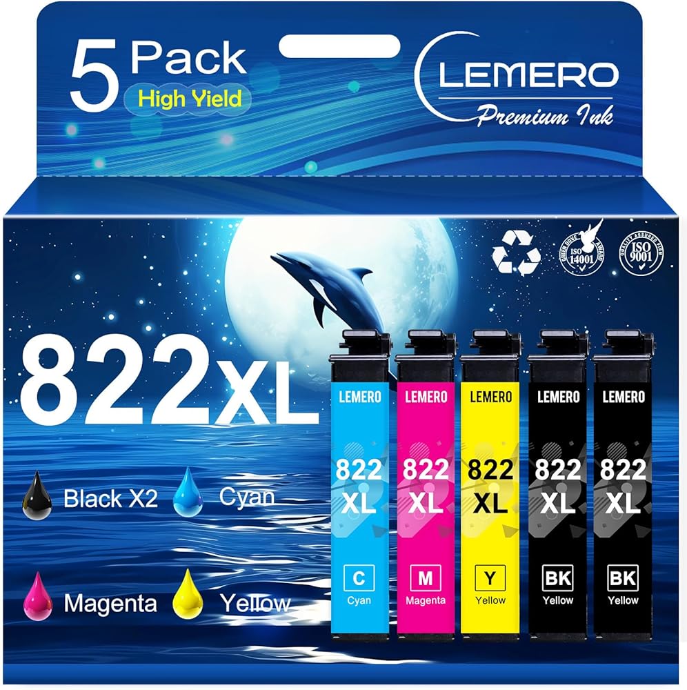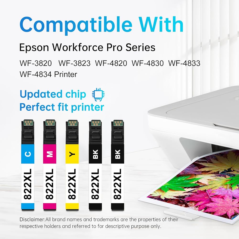 ✔️إنتاجية عالية للصفحة: يمكن لكل خرطوشة حبر سوداء 822XL لخراطيش حبر الطابعة epson wf-3820 طباعة ما يصل إلى 1100 صفحة، بينما يمكن لكل خرطوشة حبر ملونة 822XL لخراطيش حبر Epson wf-4830 طباعة ما يصل إلى 1100 صفحة (بتغطية 5%)