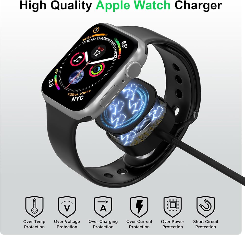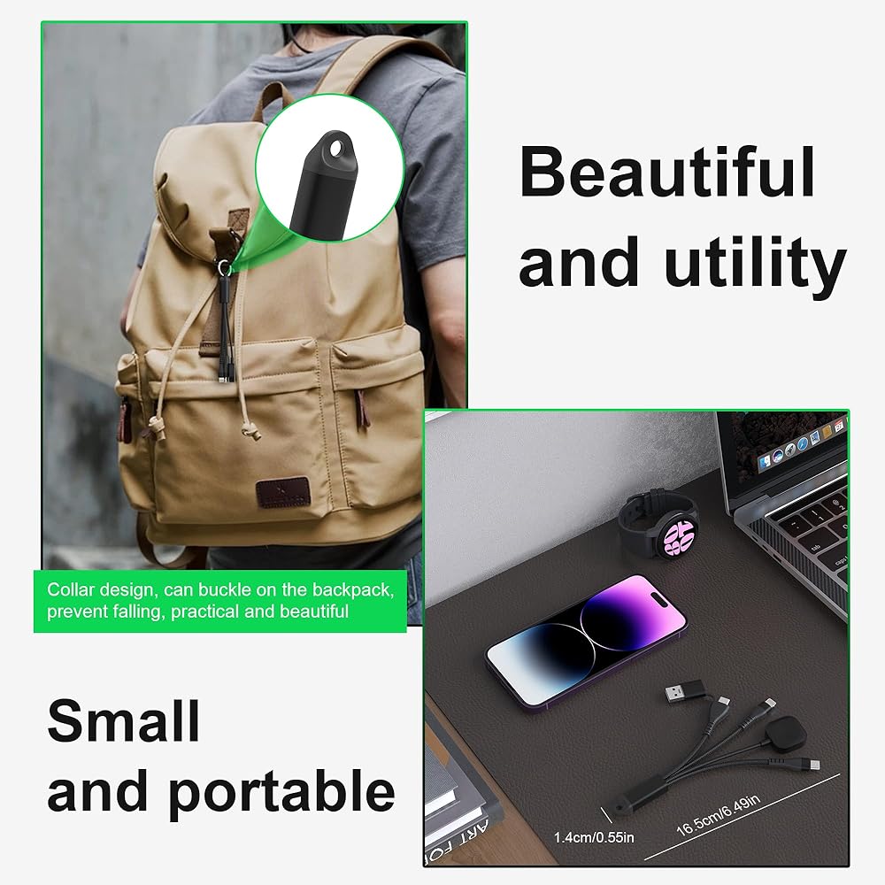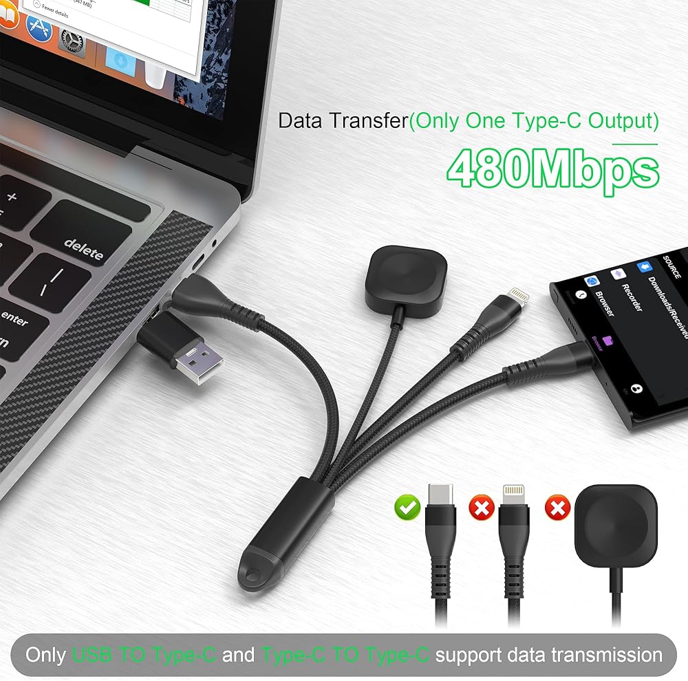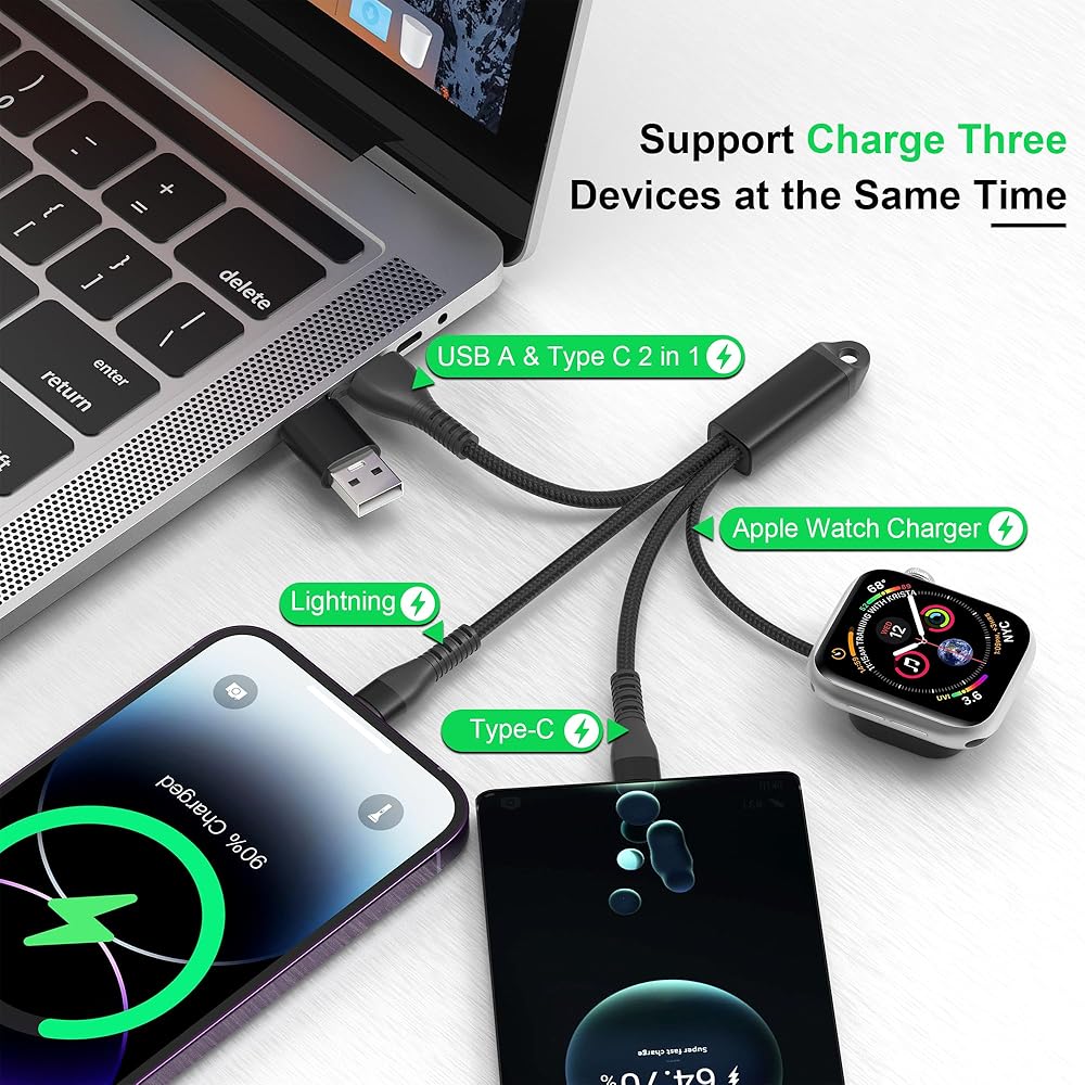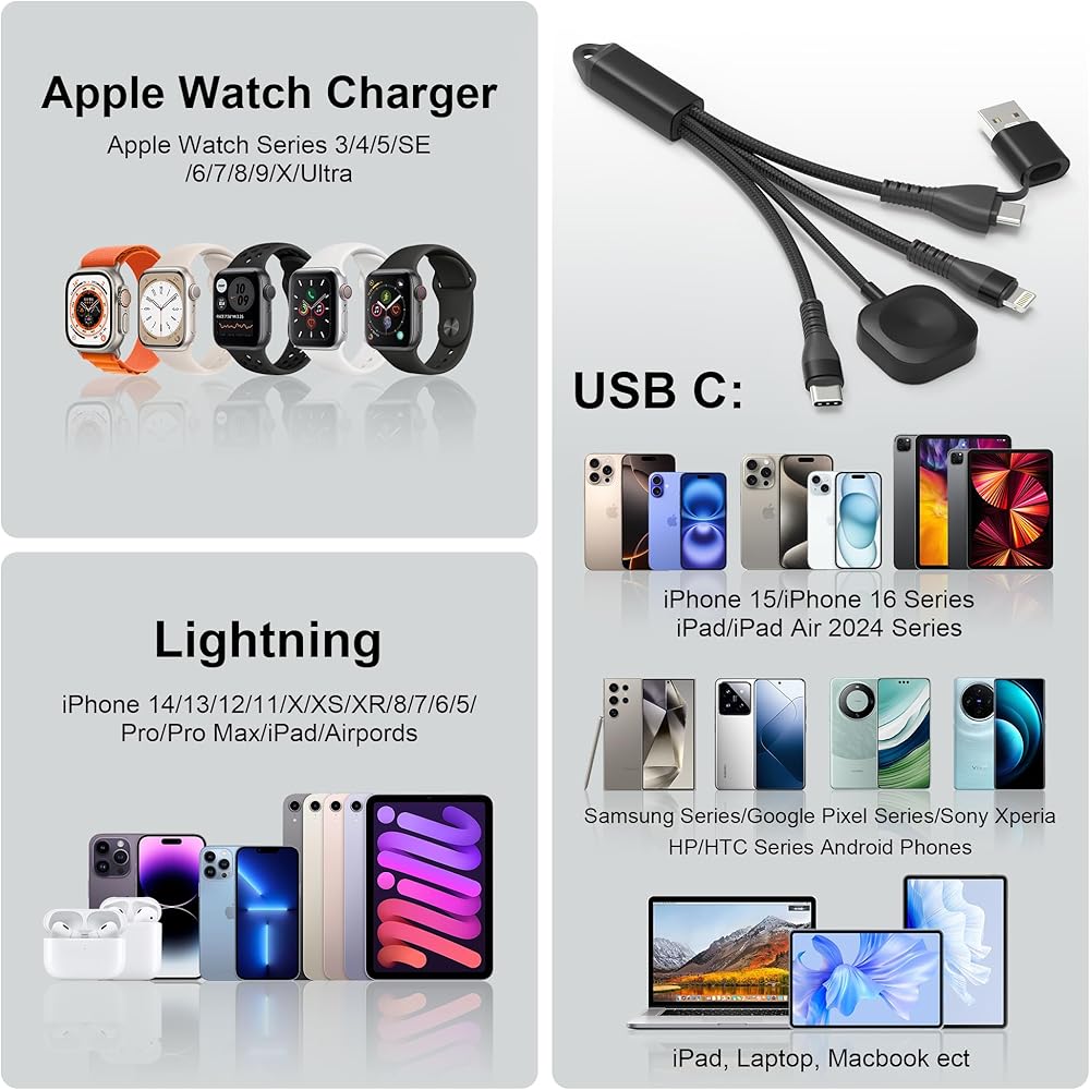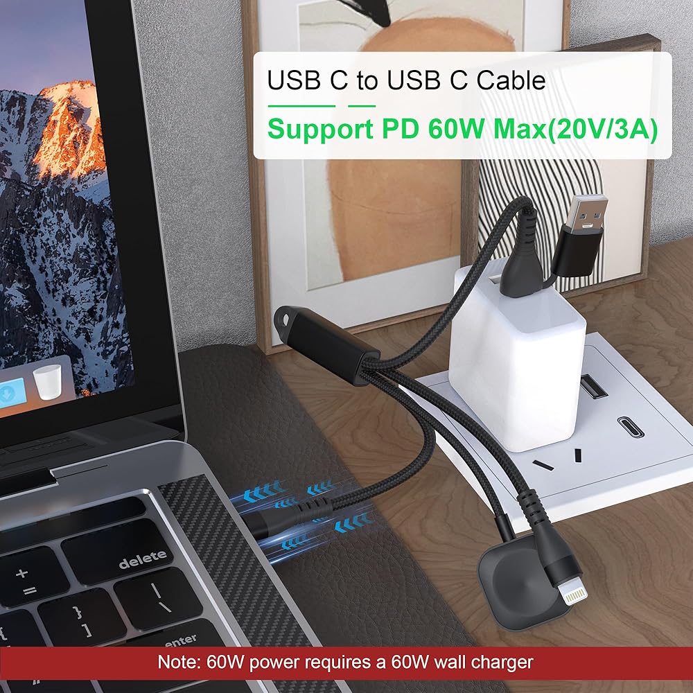 شاحن ساعة Apple Short القصير 60W - 3IN2 كابل شحن متعدد الشحن مع Apple Watch Short Short Fast Charge لـ IWATCH ULTRA/SE/10/9/8/7/6/5/4/3/2/1/iPhone16/15/14/11/11/11/11/PAD/POD/GALAXY/Android