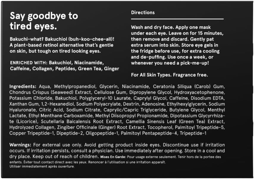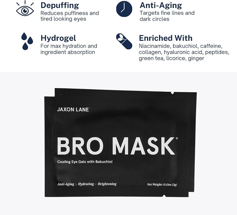 BRO MASK وسادات جل تحت العين: رقع العين المبردة للهالات السوداء والانتفاخ | مجموعة لصقات العين الهيدروجيلية المضادة للشيخوخة مع باكوشيول والشاي الأخضر وحمض الهيالورونيك والكافيين والنياسيناميد/فيتامين ب3-6 أزواج