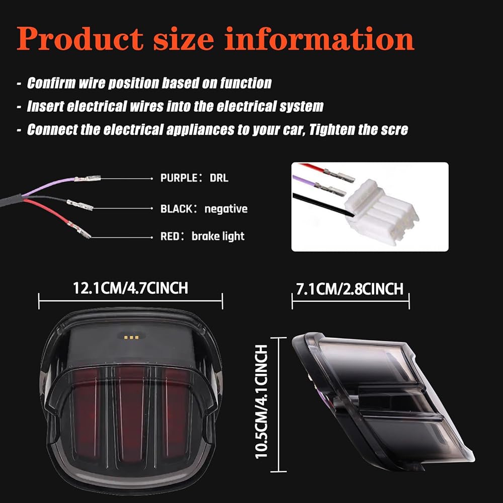 مناسب لمصباح LED الخلفي في 1991-2010 Electra Glides (باستثناء 2005 FLHTCSE، 2009 FLHT Standard)؛ جميع موديلات FLST 1991-2010 (باستثناء 1991-2001 FLSTF، 1997-2003 FLSTS، 2005-2007 FLSTSC، 2005-2010 FLSTN، 2010 FLSTSE)؛ جميع موديلات 2002-2010 FXST (باستثناء 2002-2007 FXSTD، 2008-2010 FXCW/C، 2007-2009 FXSTSSE)؛