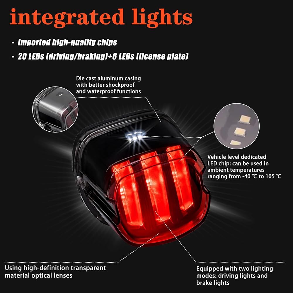 دراجة نارية LED ضوء خلفي بدوره إشارات النسر مخلب الفرامل تشغيل أضواء متكاملة للرياضي فات بوي التراث سوفتيل XL FLHR FLHRCI FXD الفرامل الخلفية بارك ضوء وقف مصباح (1PCS)
