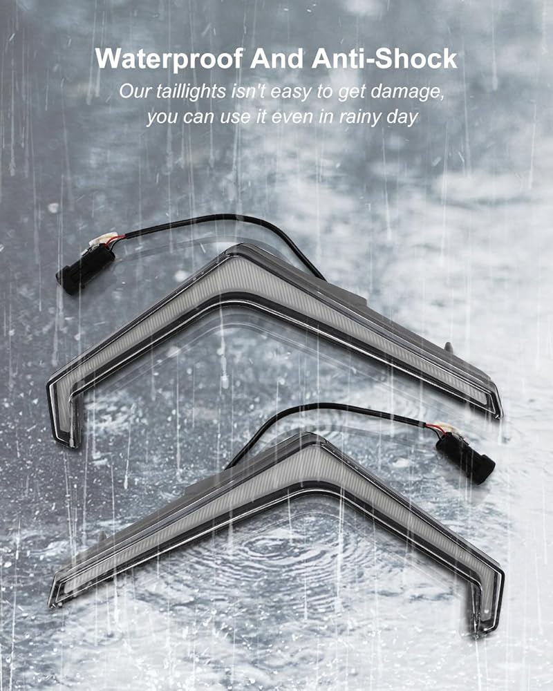 IP67 مقاومة للماء: إشارات الانعطاف LED آمنة تمامًا للاستخدام في المطر أو عند عبور الأنهار. مقاومة ممتازة للماء تسمح لمصباح الذيل المركزي rzr 1000 xp بالاستمرار في العمل بشكل جيد وإضاءة، وهو مناسب لأي طقس.
