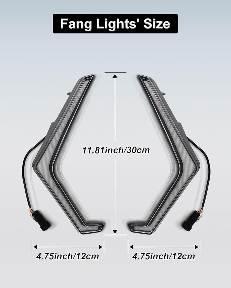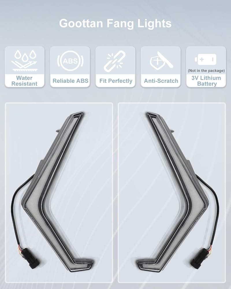 مادة عالية الجودة: مصابيح LED على شكل فانغ مصنوعة من الغلاف الخلفي ABS ومصابيح أمامية من البولي كربونات. يضمن غلاف ABS الصلب عدم تعرضه للتلف حتى في حالة خدشه بالفروع أثناء القيادة.