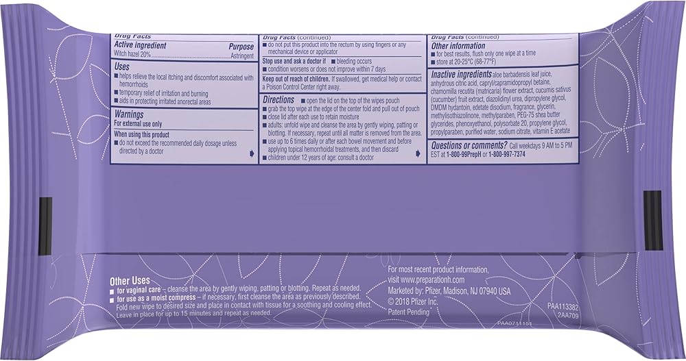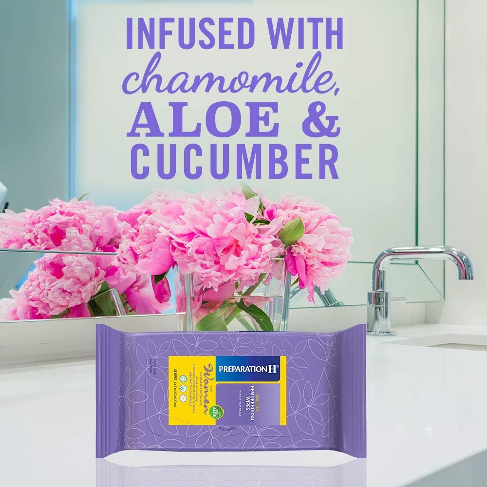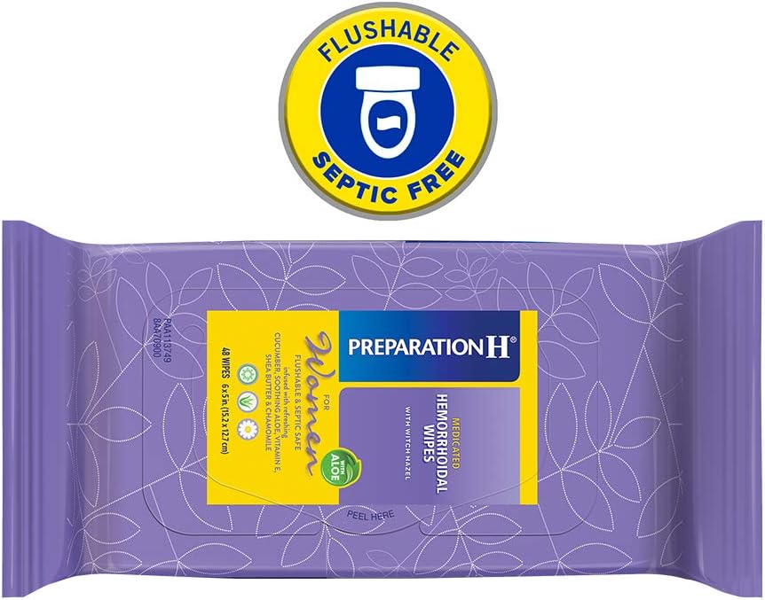 Preparation H Women's Hemorrhoid Wipes offer effective relief of pain and irritation caused by hemorrhoids. Even mild irritation around the butt can be an uncomfortable and persistent problem. When other hemorrhoid treatments aren't providing the comfort you need, these flushable, septic-safe wipes combine the relief you trust from Preparation H hemorrhoid care products with soothing properties of cucumber, aloe, vitamin E, shea butter and chamomile. These itch relief wipes also help relieve itching, burning and irritation associated with hemorrhoids, and are gentle enough to be used for everyday cleansing when using the bathroom. Use these Preparation H wipes up to 6 times daily for fast acting hemorrhoid care. Get comfortable with it, with hemorrhoid relief from Preparation H, the number 1 doctor recommended brand for hemorrhoid treatment (1). (1) Among OTC brands