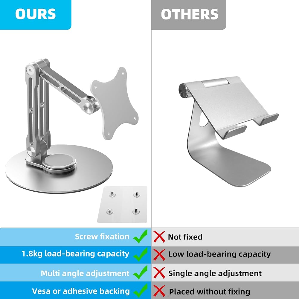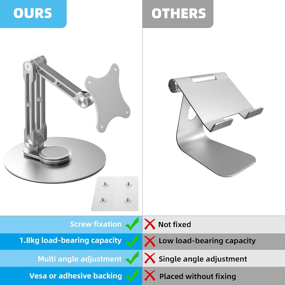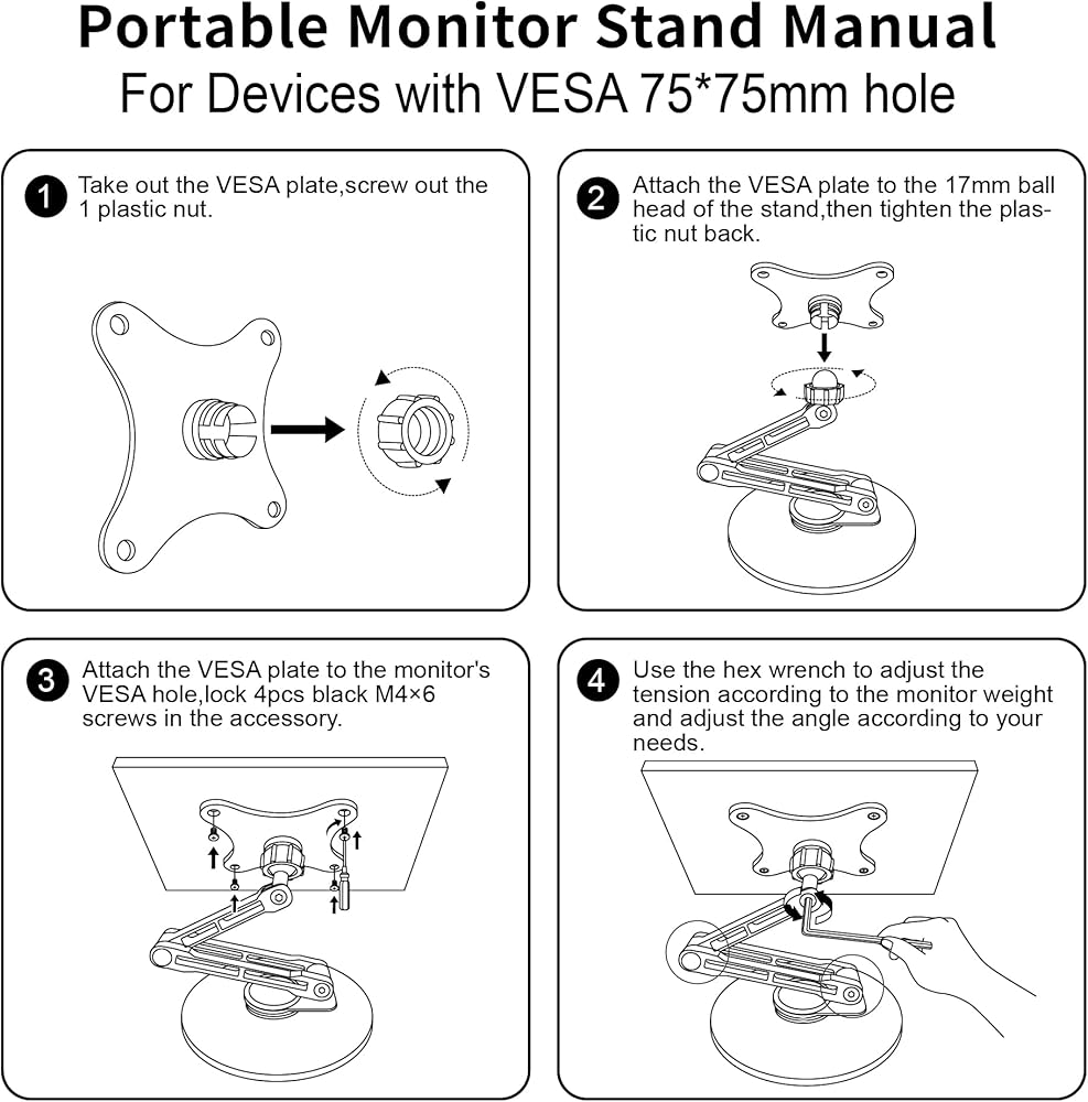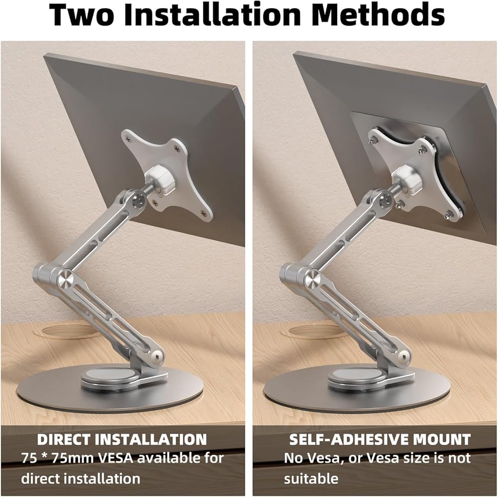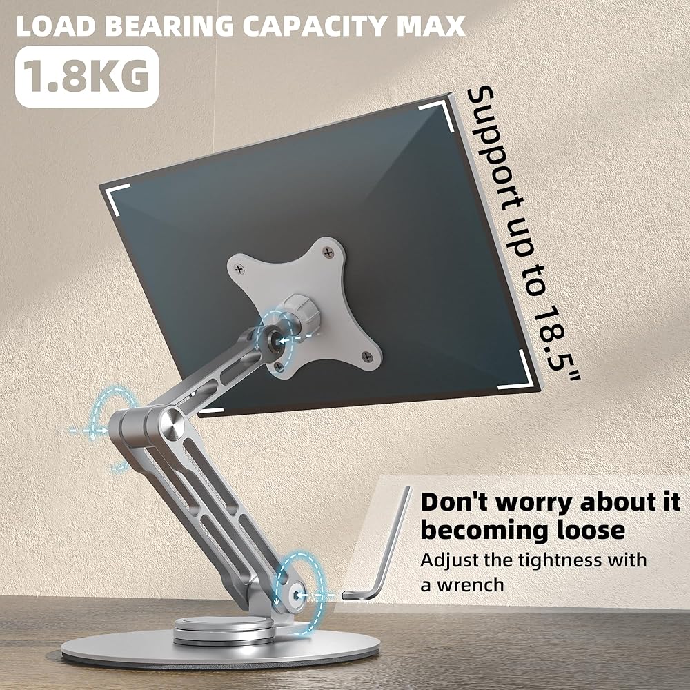 حامل شاشة مثبت على حامل VESA مقاس 75 مم - حامل شاشة صغير فضي قابل للطي مقاس 15.6 بوصة و16 بوصة و17 بوصة و17.3 بوصة و18 بوصة و18.5 بوصة حامل شاشة محمول يدعم وضع مسطح VESA 75*75 مم