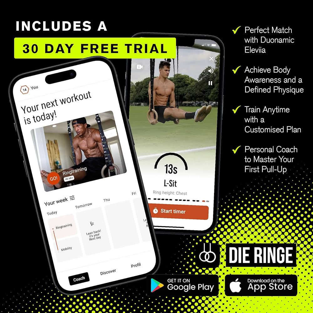 • افتح المزيد من التدريبات: قم بترقية Eleviia الخاص بك باستخدام ملحق Duonamic Rings وافتح تمارين جديدة مثل تمارين الضغط والانخفاضات والصفوف وتمارين العضلات وتمارين السحب الحلقية لاستهداف الجذع والصدر والظهر والعضلة ثلاثية الرؤوس والمزيد.
