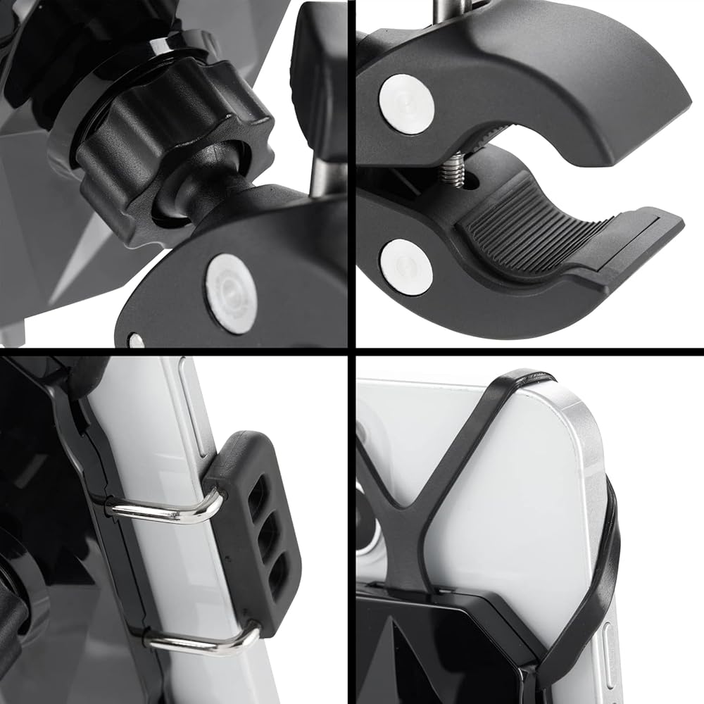 • Universally Compatible: Fits bicycle, recreational vehicle, and motorcycle phone mount it securely grips handlebars and other poles between 0.7-1.25 inches (18-32 mm) in diameter