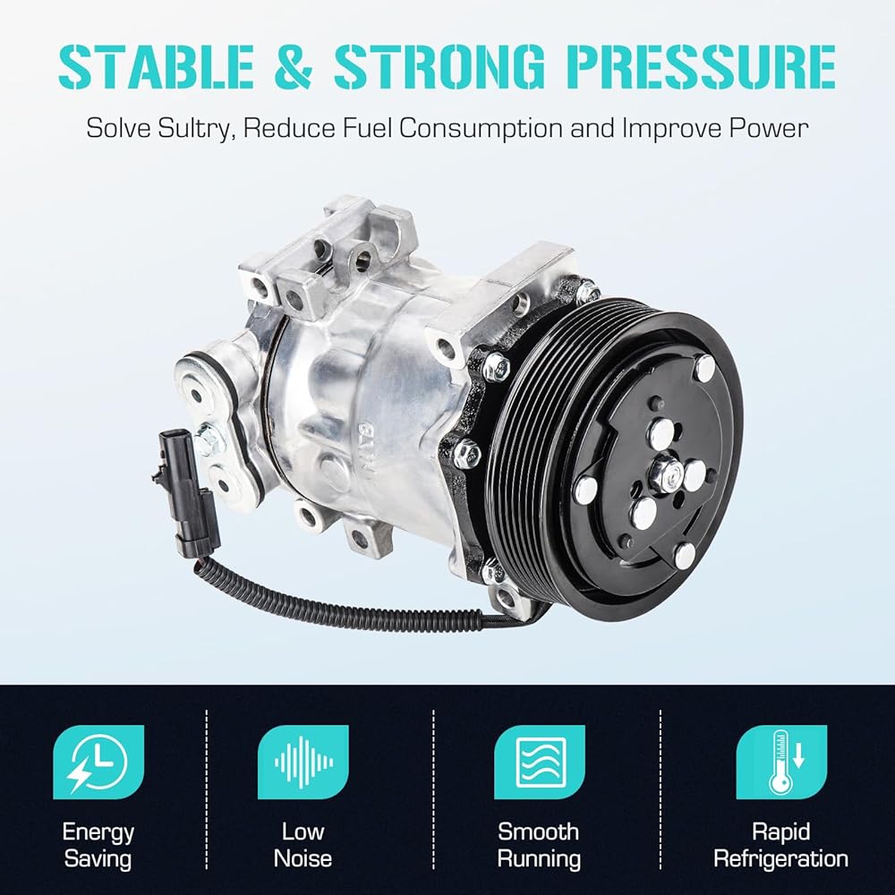 【Energy Saving & Low Noise】The AC compressor works steady and efficient under a low noise condition, provide you with a chill nice and cold ride. Under a lower load factor, low power will be input when driving at high speed, which increases fuel economy and makes operation smoothly.