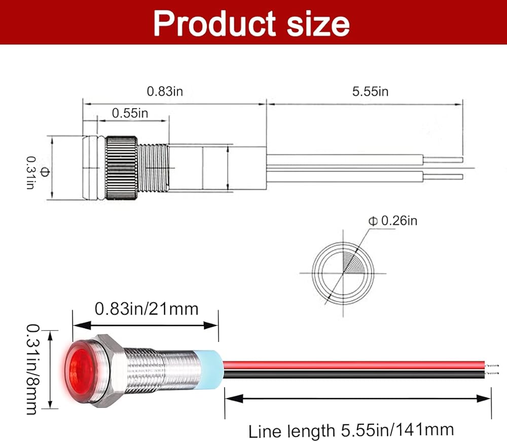 【الجهد المقدر 】 تيار متردد/تيار مستمر 12 فولت؛ قطر فتحة التركيب: 6 مم؛ طول الكابل: 150 ملم / 5.9 بوصة.