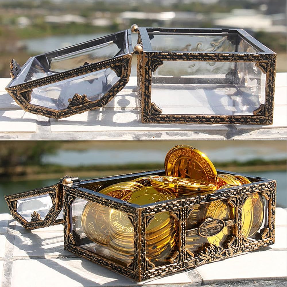 【Wide Application】The clear mini treasure chest are the perfect props for pirate theme party and treasure hunts. Also good as Easter, New Year, Christmas, wedding, birthday party gift box.