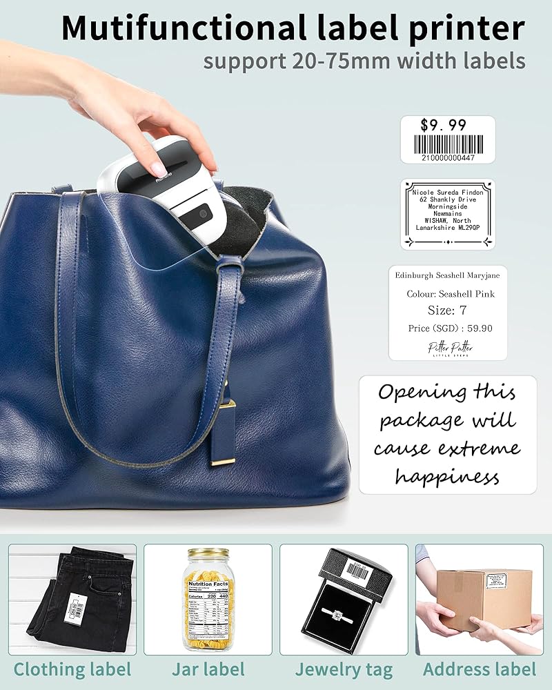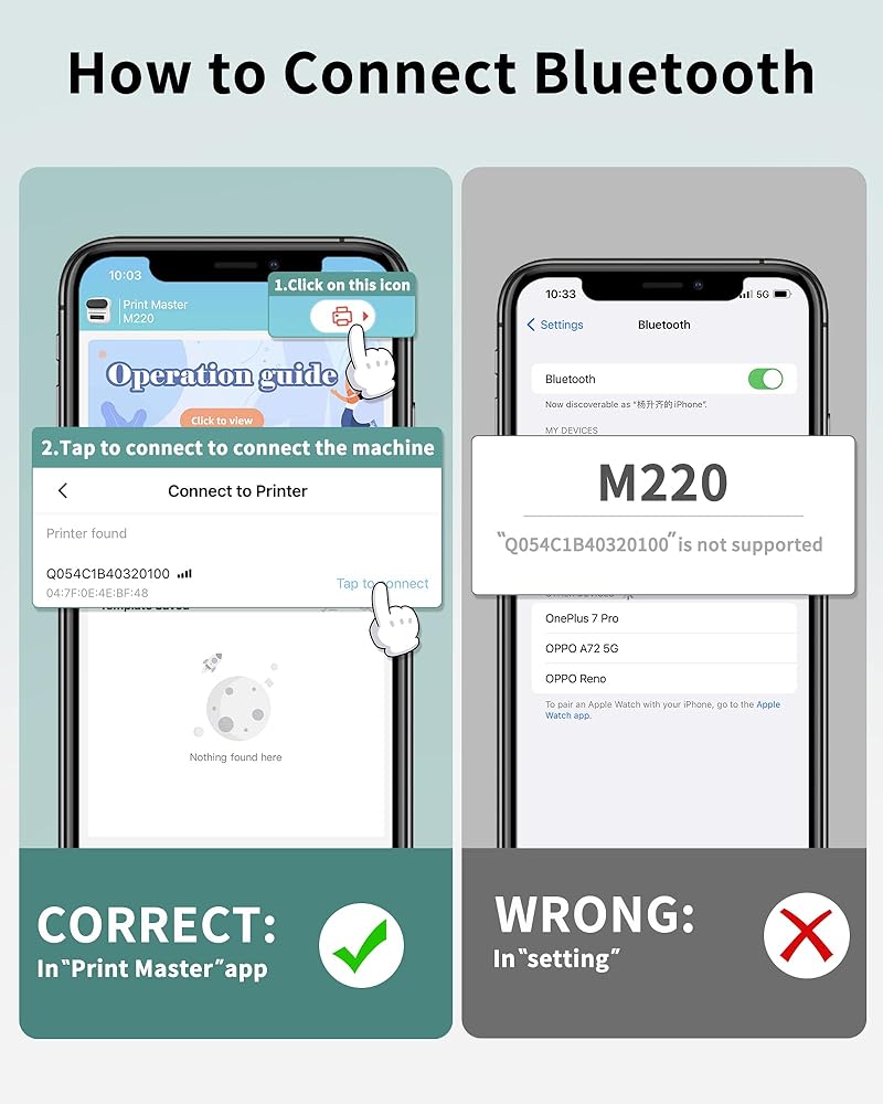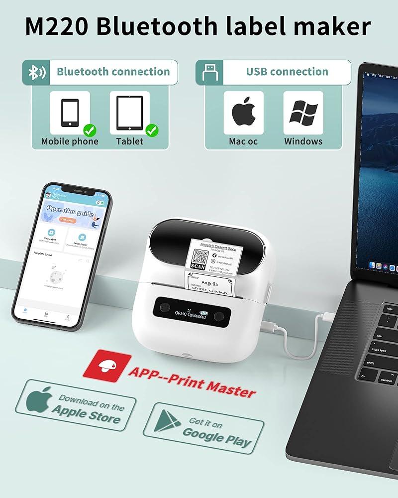 صانع ملصقات سهل الاستخدام: صانع ملصقات بلوتوث Itari M220 متوافق للغاية مع هواتف IOS وAndroid عبر البلوتوث، وكذلك مع MAC وWindows 10 عبر USB. تحتاج إلى تثبيت تطبيق PRINT MASTER من App Store أو Google Play، وتشغيل طابعة الملصقات الحرارية M220، وتحديد طراز طابعة البلوتوث M220 والاتصال به من تطبيق PRINT MASTER، وبدء الطباعة.