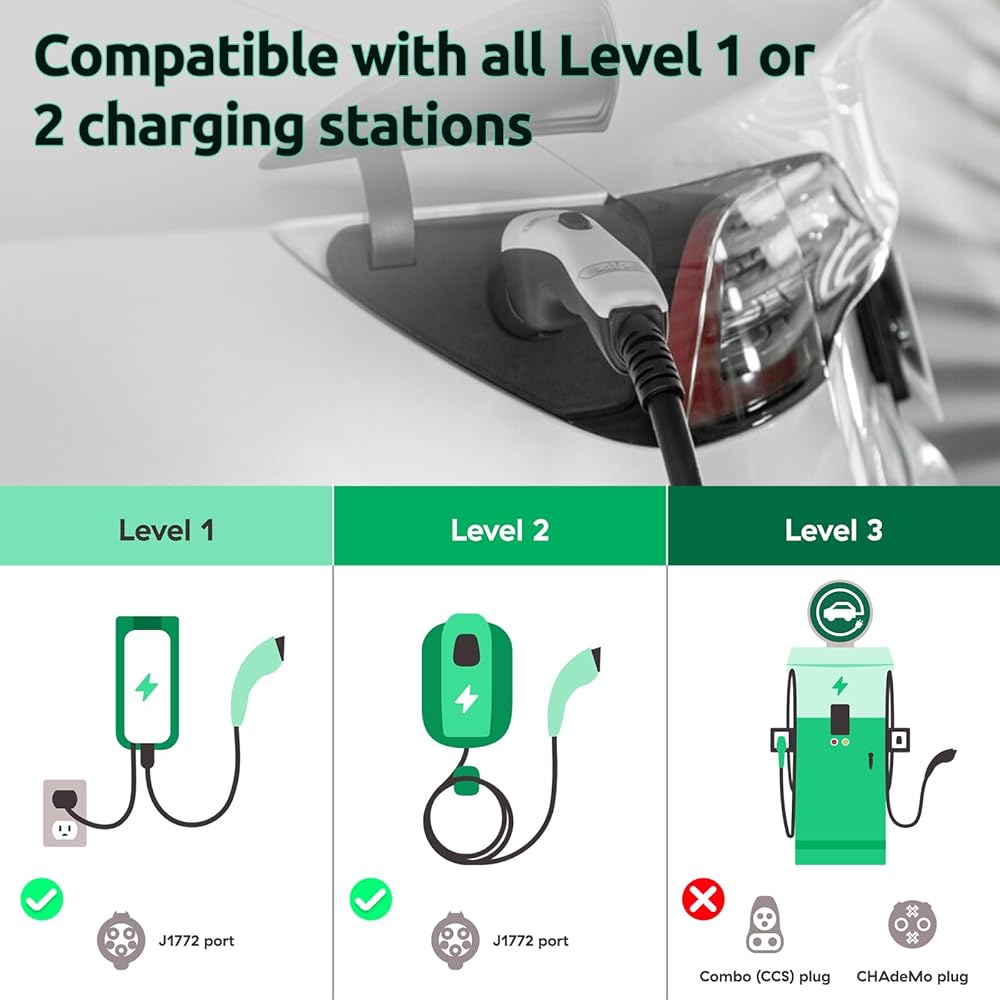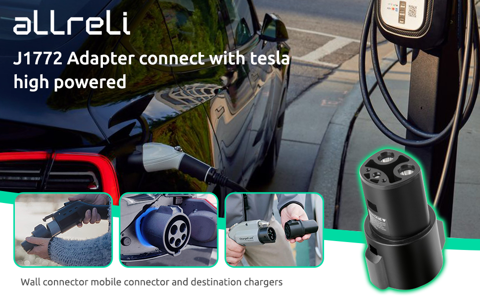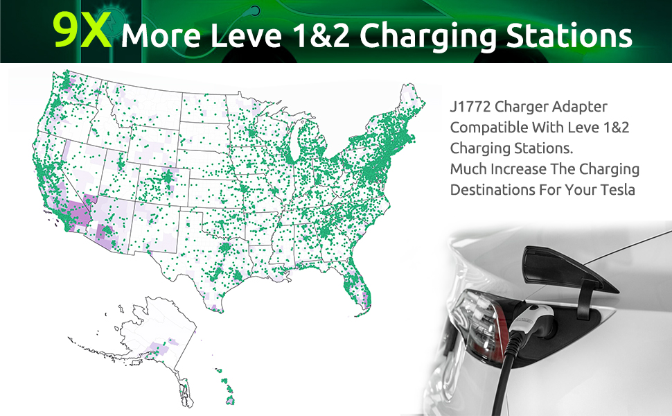 - تركيب سهل للتوصيل والتشغيل - ما عليك سوى توصيل المحول بشاحن محطة الشحن SAE J1772 والمستوى 1/2 ومركبة Tesla الخاصة بك.