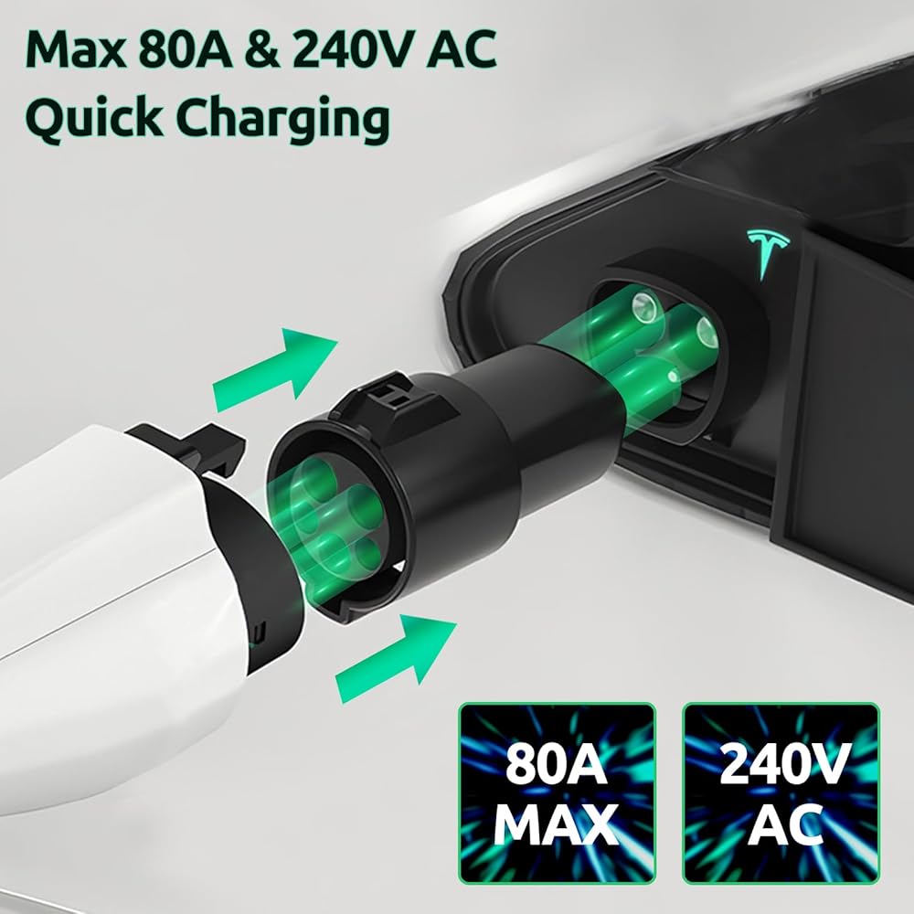 - 240 فولت تيار متردد، 50-60 هرتز، 80 أمبير كحد أقصى [معتمد للسلامة] - يوفر شحنًا فعالاً وآمنًا لسيارة تيسلا الخاصة بك.