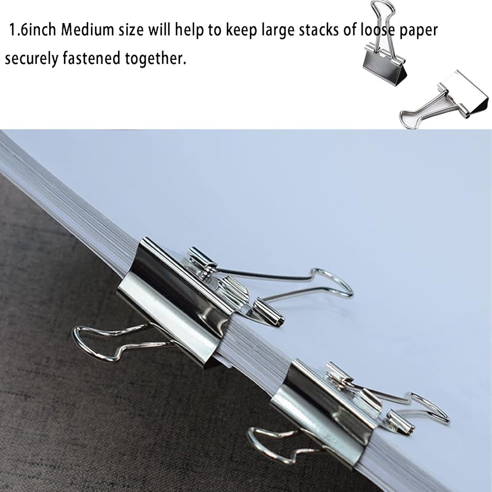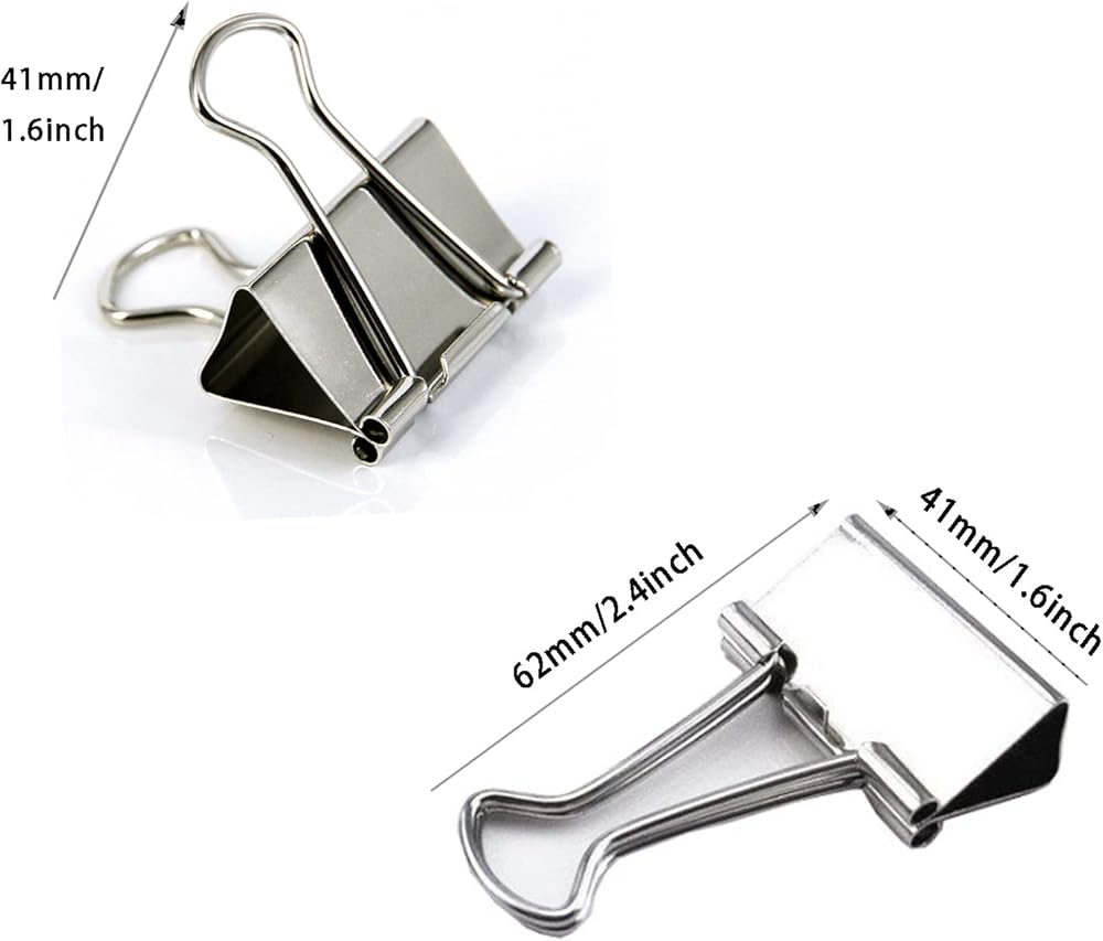 مشابك ربط كبيرة مقاس 1.6 بوصة (50 حزمة)، مشابك ربط كبيرة متوسطة الحجم للوازم المكتب والمنزل، فضي