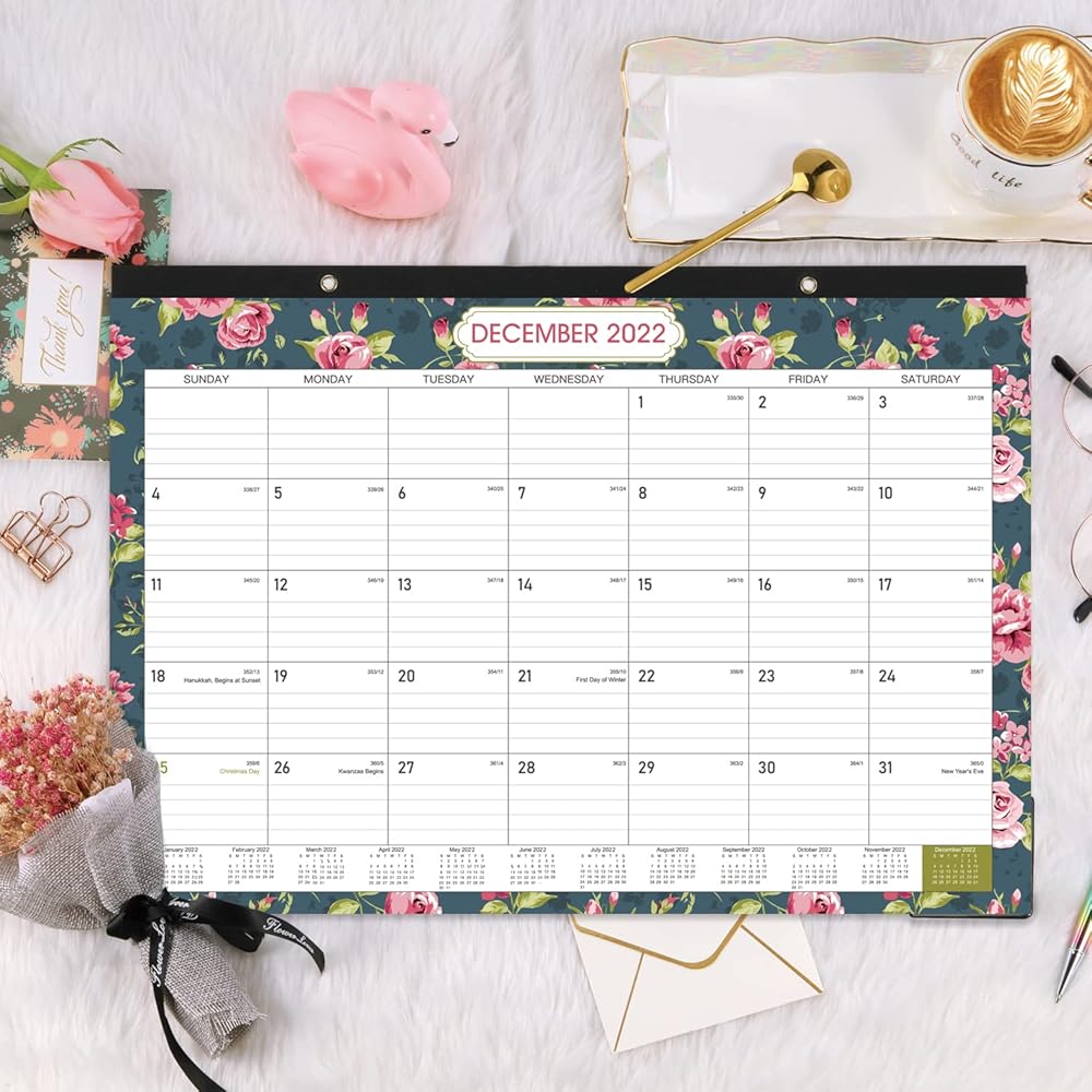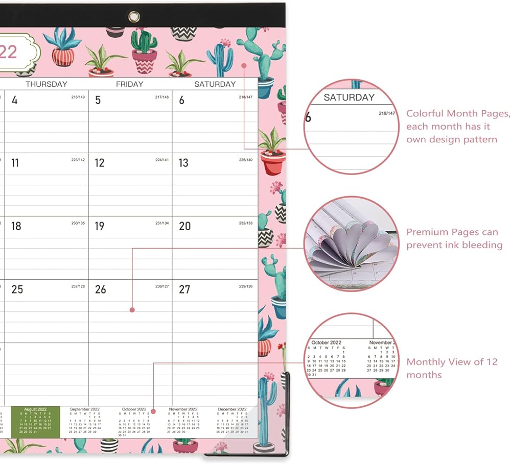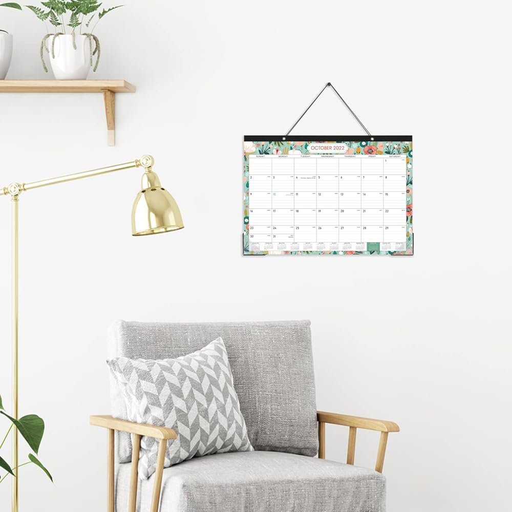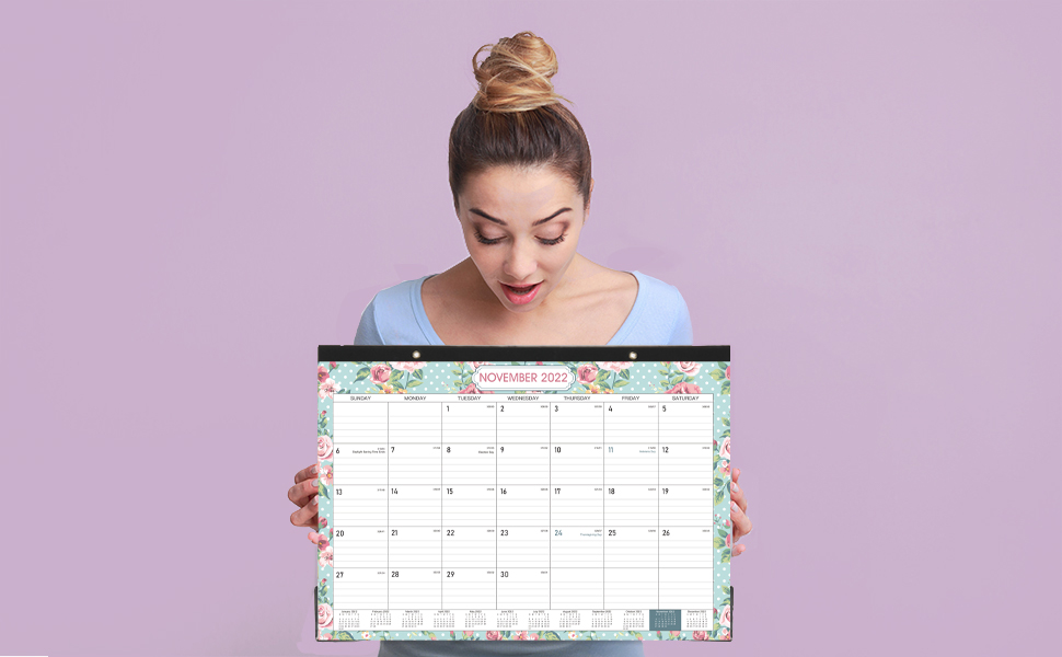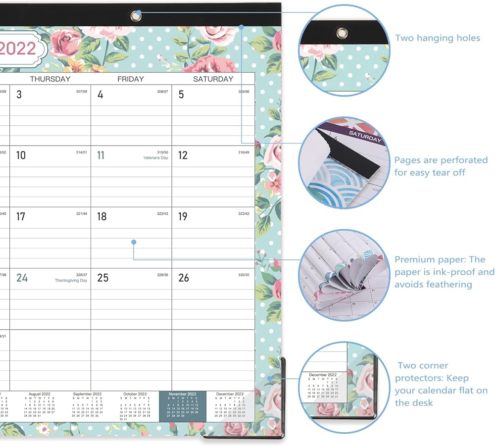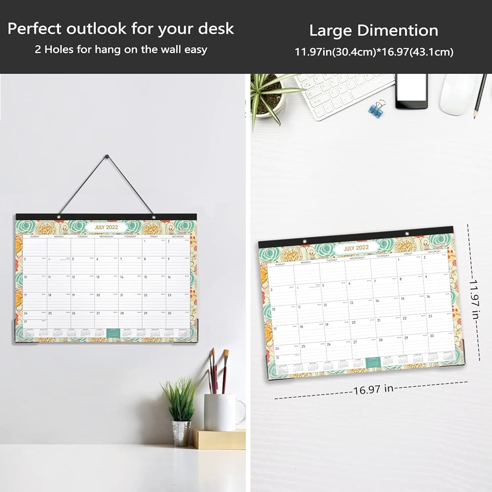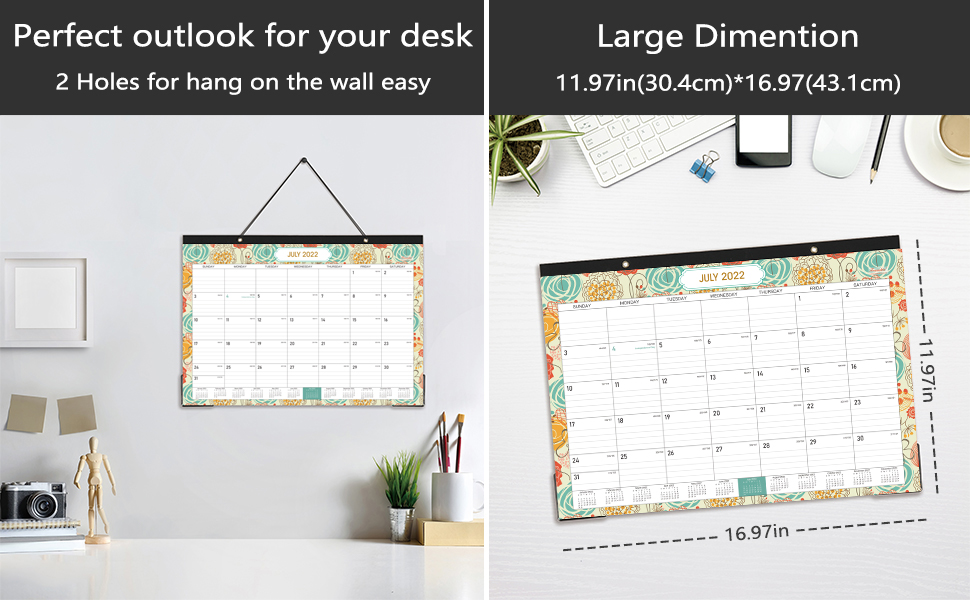 • 🏵تقويم رائع للمكتب والجدار - إلى جانب استخدامه كمنشف لسطح المكتب، فإن فتحتين ذهبيتين مثقوبتين على عصابة الرأس القوية تمكنك من تعليق هذا التقويم 2022-2023 على الحائط، مما يسمح باستخدام تقويم سطح المكتب/تقويم الطاولة كتقويم حائط معلق. 2022-2023.