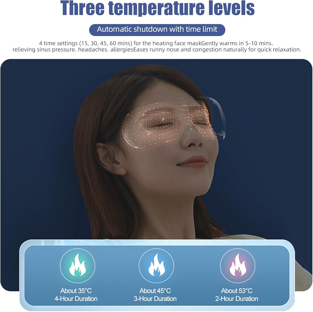HOLLOWED VISUAL DESIGN: Heating Hollowed Visual Face Mask enabling you to maintain a better state during intense studying and work!Prevent excessive eye fatigue leading to dizziness, blurred vision, and myopia.Simultaneously addressing symptoms like nasal congestion, frontal sinus pain, and runny nose for effective relief.