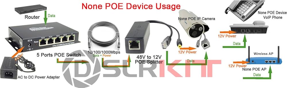جيجابت نشط PoE الفاصل الطاقة عبر إيثرنت 48 فولت إلى 12 فولت 10/100/1000 ميجابت في الثانية