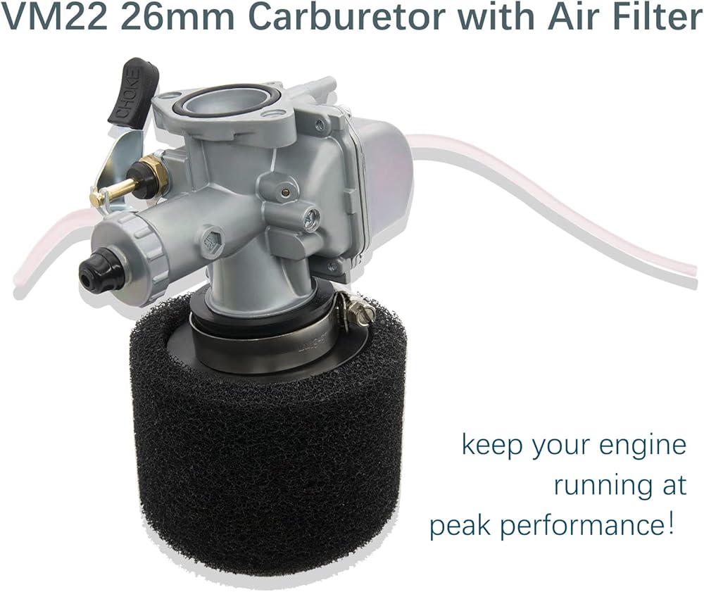 Feature - Vm22 carburetor is made of premium quality material, durable for a long time use. Vm22 carburetor adjuster directly replace the original old parts or damaged parts. The bolts of the 26mm carburetor are being upgraded to increase power and functions, easy to operate choke to control the flow of external air into. Vm22 carburetor kit keeps your engine running at peak performance