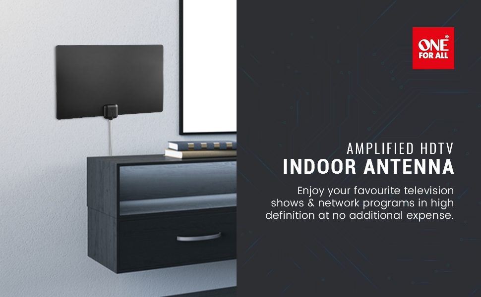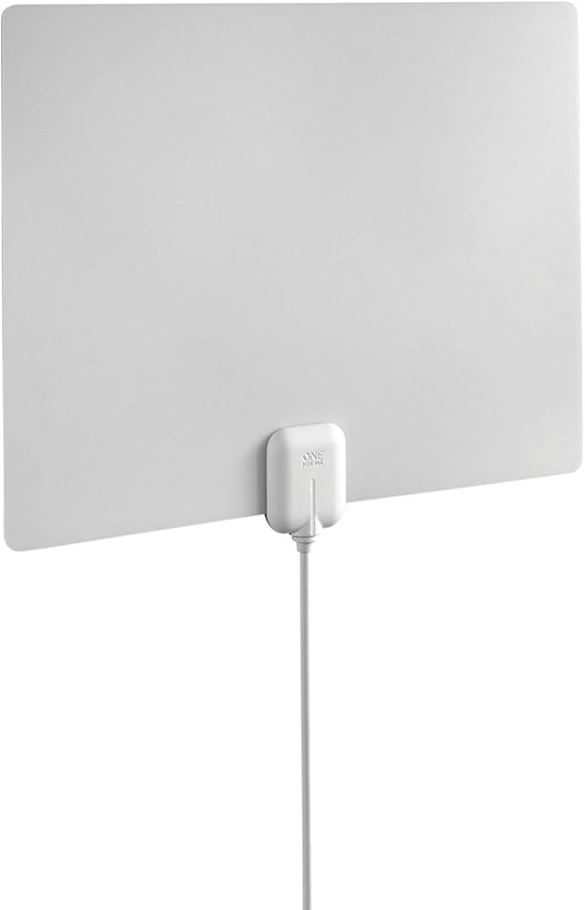 هوائي One for All 14542 HDTV - هوائي تلفزيون داخلي مضخم رفيع للغاية مع نطاق يصل إلى 60 ميلًا، واستقبال متعدد الاتجاهات وتحكم تلقائي في الكسب - أبيض/أسود