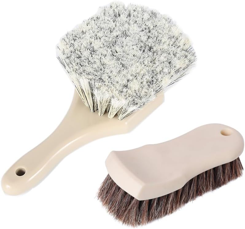 Looking for a high-quality brush that can clean anything from your car's wheels to its leather seats? Look no further than BrushDepot! Our car wheel and tire brush is the perfect tool for deep cleaning your vehicle's toughest spots. Made with ultra-soft fibers and densely packed soft horsehair bristles, our brush delivers maximum cleaning power without damaging sensitive surfaces. It's perfect for leather seats, armrests, dashboards, door panels, purses, luggage, briefcases, boots, and more! Our brush is built to last, with premium quality materials that won't shed or scratch surfaces. The ergonomic design ensures comfortable grip, even in hard-to-reach areas, and the convenient hanging hole allows for easy storage. Get your BrushDepot Car Wheel and Tire Brush today and give your car the deep clean it deserves!