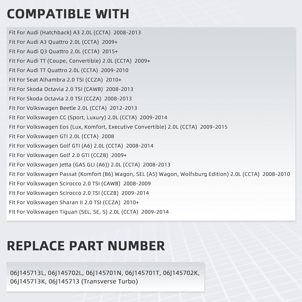 • 【متوافق مع سلسلة Audi】يناسب Audi A3 2.0L 2008-2013، Audi Q3 Quattro 2.0L 2015+، Audi TT 2.0L 2009+، Audi TT Quattro 2.0L 2009-2010
