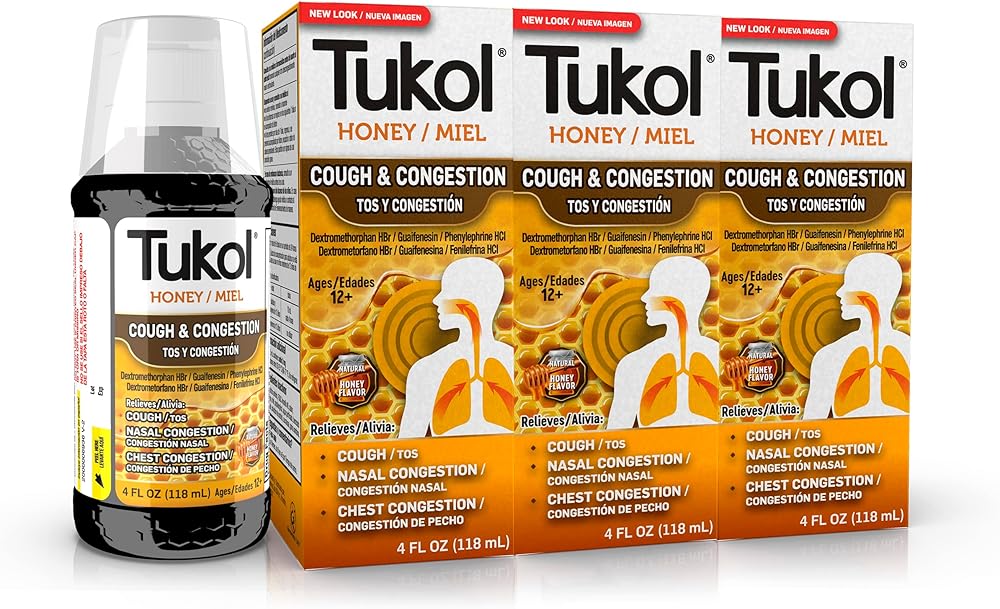 Tukol X-Pecto Miel Multi Symptom Cold provides powerful cold symptom relief. This non-drowsy medication is an expectorant, relieves nasal congestion and suppresses coughs with natural honey. This adult medication has a soothing honey flavor and relieves sore sore throats, colds and coughs to have you feeling better in no time.