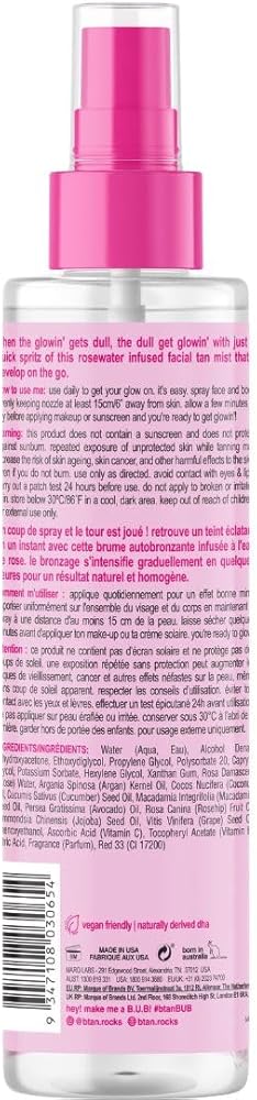 بي.تان رذاذ تسمير الوجه الشفاف | Gimme The Glow Down - ماء تسمير تدريجي، مملوء بماء الورد، نباتي، لم يتم الإساءة إلى الحيوانات لتصنيعه، 6.7 أونصة سائلة