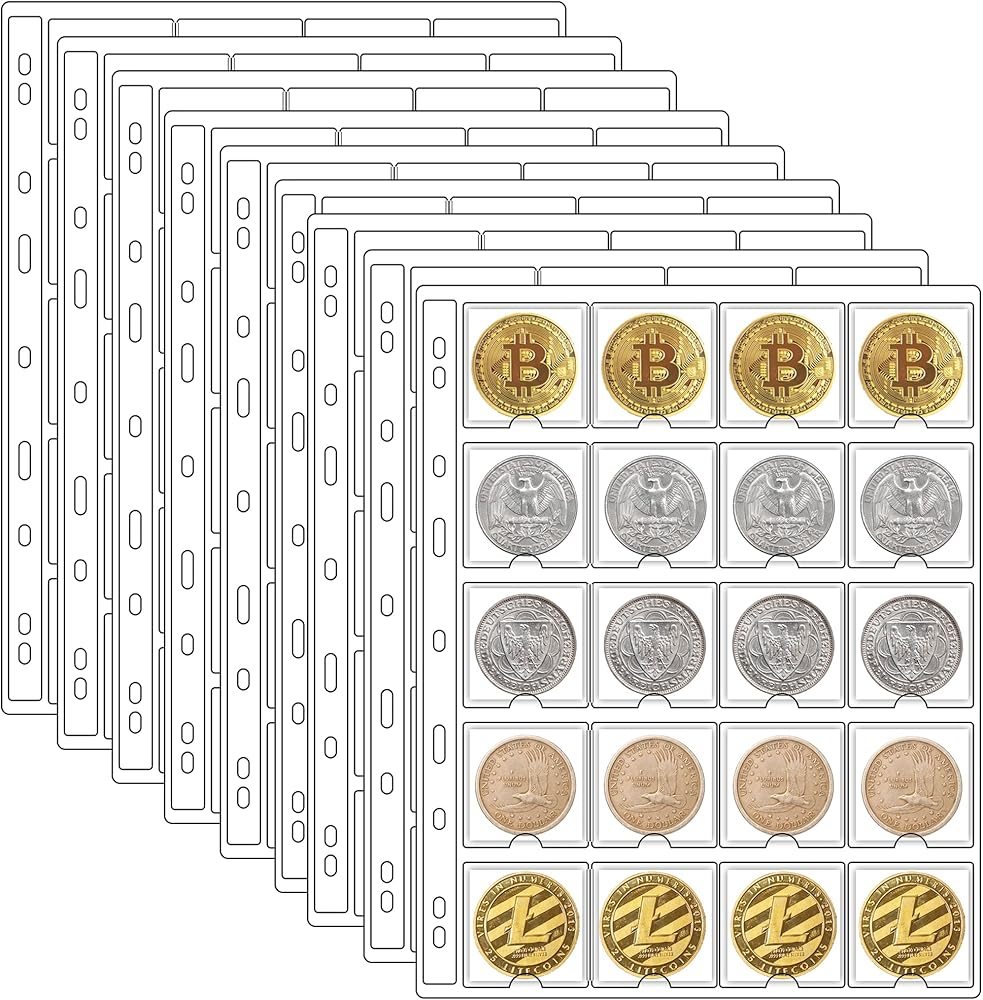 المميزات: تستخدم مع الورق المقوى الذي يقلب العملات المعدنية، ولا تستخدم مباشرة لتحميل العملات المعدنية. ما عليك سوى طي الورق المقوى الذي يحتوي على عملة معدنية بداخله، ثم إغلاقه بالدبابيس أو الشريط اللاصق، ثم وضعه في صفحات جيوب العملات البلاستيكية الخاصة بنا.