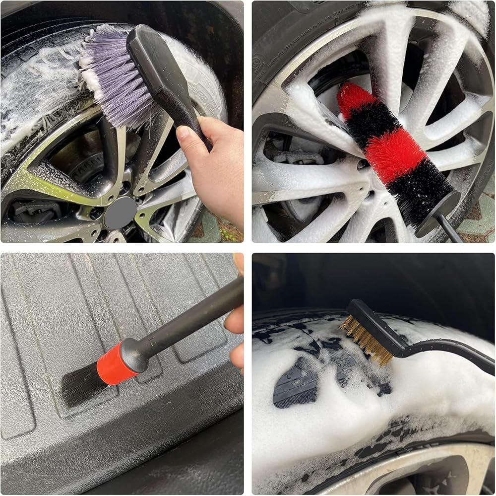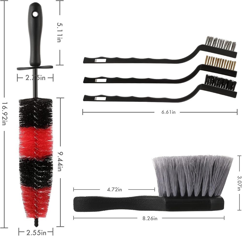 This wheel cleaner brush set is the ultimate collection of car wash supplies. The car wheel brush are a good helper for to wash, wax, dust and polish your vehicles. it can make a great gift that keeps on giving for any car buffs, truck enthusiasts or classic car fan. Prefect for car, truck, motorcycles, rvs, air vent, bumpers, inner fender, engine bays, exhaust tips, spokes, wheel, rim, tire, wheel well, fender walls and much more.