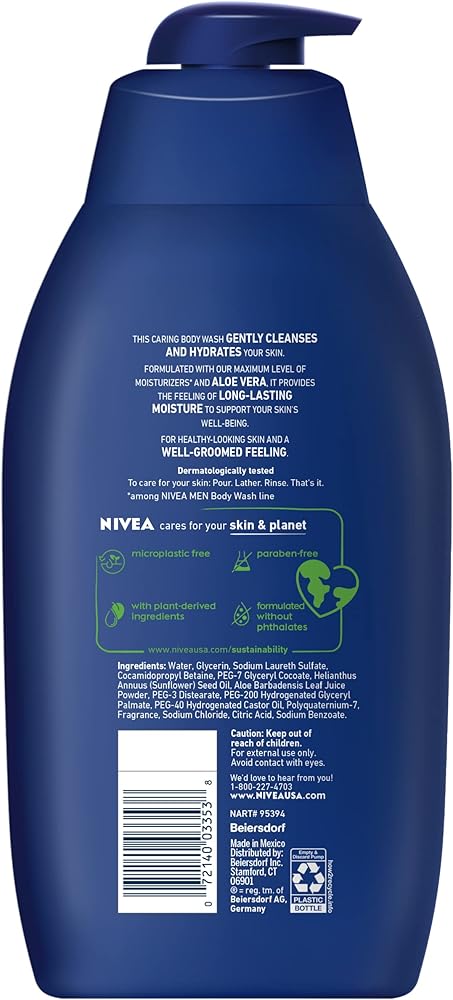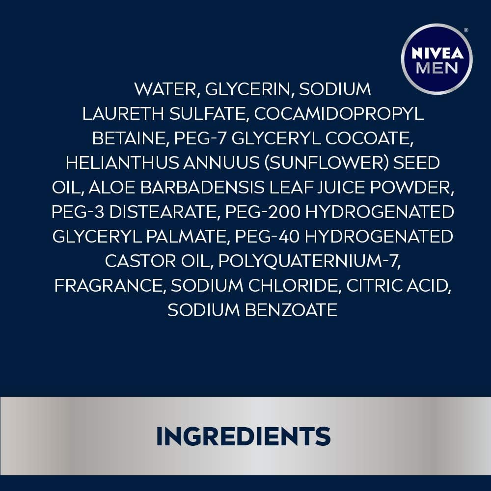 Take care of your skin with NIVEA MEN Maximum Hydration Body Wash. This moisturizing body wash is specially formulated for men with dry skin. NIVEA MEN Maximum Hydration Body Wash is enriched with Aloe Vera to gently cleanse and leave skin feeling hydrated and moisturized. This body wash can be used for shaving, and as a moisturizer, body wash and shampoo. With a long-lasting scent of citrusy notes and woody amber, this body wash creates a modern, masculine fragrance that leaves you feeling fresh long after the shower. It is also free of phthalates, parabens and microplastic particles. A hydrating body wash is a key part of a skin care routine and pairs well with NIVEA MEN Maximum Hydration Nourishing Body Lotion. To use, rub this NIVEA MEN body wash into a lather while gently massaging over body and rinse.