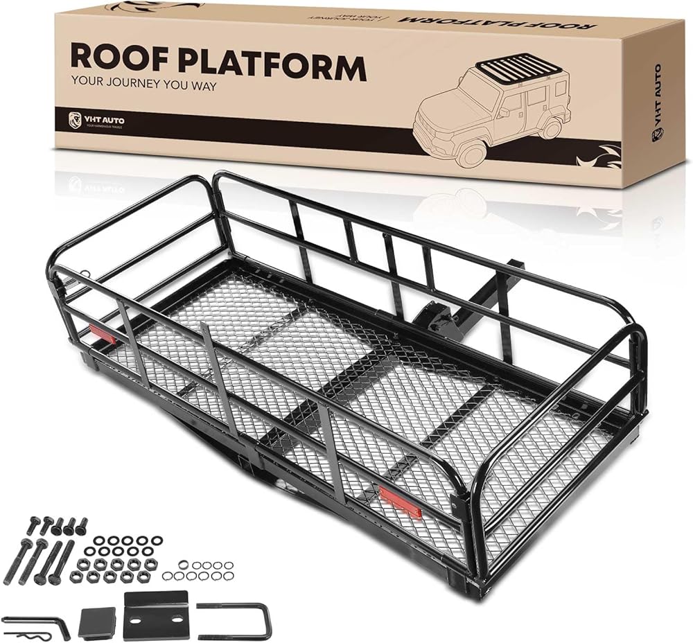 مركبة متوافقة: حامل بضائع YHTAUTO مناسب لأي فتحة وصلة مقطورة مقاس 2 بوصة. يرجى التحقق من Amazon Garage أو وصف المنتج للتأكد من شراء المنتج المناسب