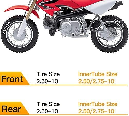 🏍WIDE COMPATIBILITY: 2.50/2.75-10 Dirt Bike Replacement Inner Tubes Used on many 49cc, 50cc, and 70cc mini dirt bikes and pit bikes models, like Baja Dirt Runner 49, Motovox MVX70, Razor MX500(rear) MX650(rear) SX500, Yamaha PW50, Suzuki JR50 DRZ70, KTM Mini/SR Adventure, Coolster QG-210 and more