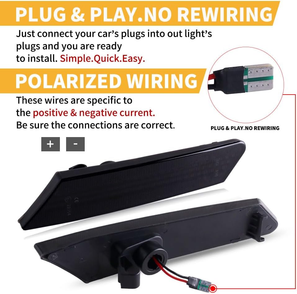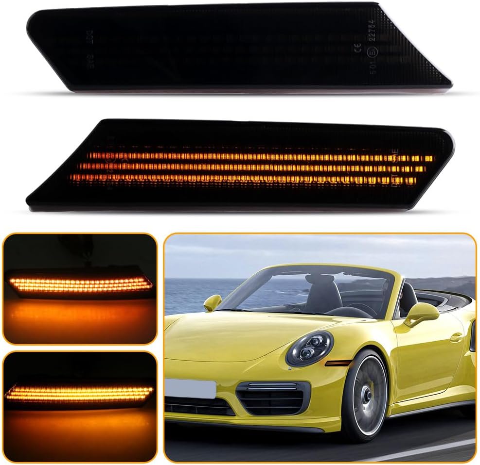 【العبوة: 】2 قطعة عدسة Raryloy Smokded Porsche 911 LED علامة جانبية (جانب السائق + جانب الركاب)، مع مصابيح LED مدمجة للعلامات الجانبية.