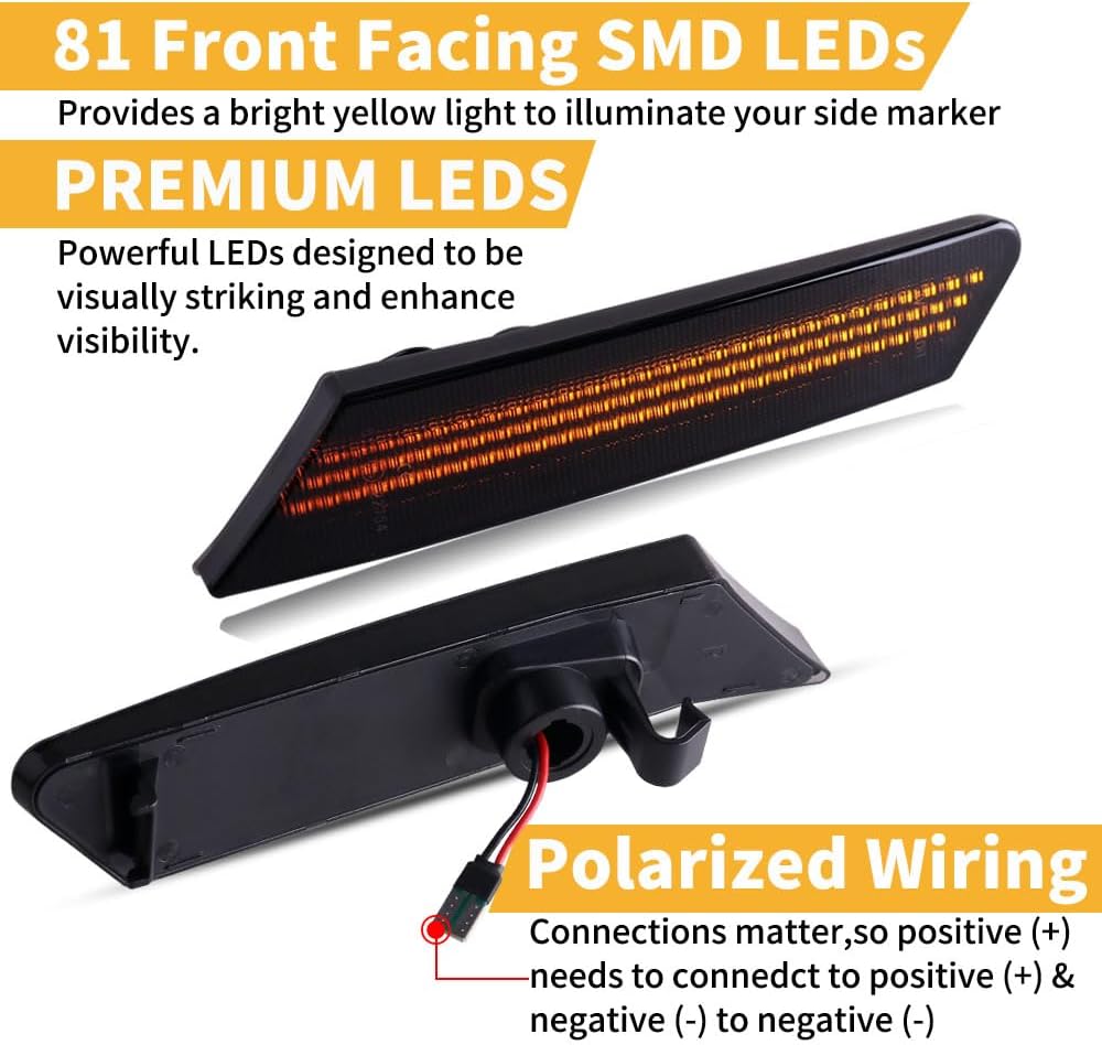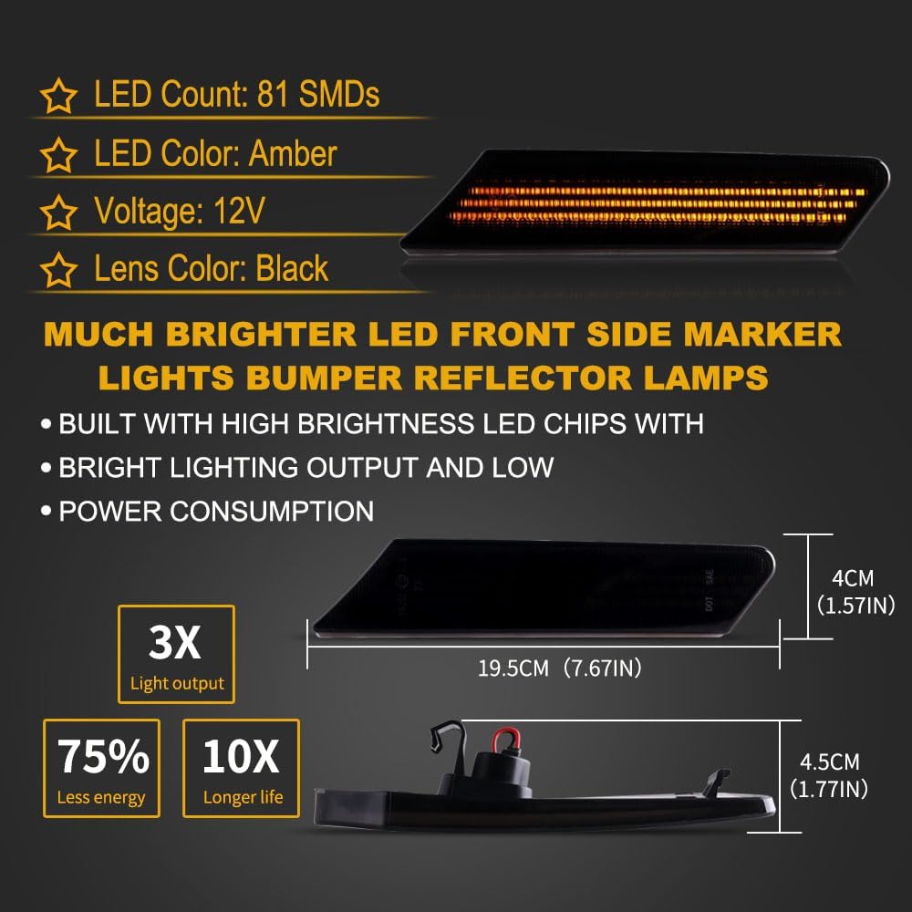 【 ✅سطوع عالي 】مدمجة 81 قطعة من رقائق LED العنبر SMD عالية الطاقة، إضاءة فائقة السطوع وأوسع، لا توجد بقع عمياء وبقع داكنة، توفر مظهرًا مبهرًا وإضاءة رائعة لجانب سيارتك في الليل، مما يضمن سلامة القيادة .
