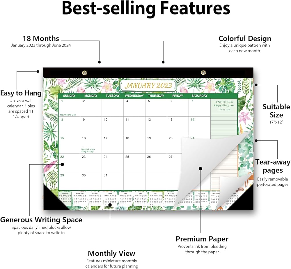 ✔️【عبوة قيمة】يبدأ تقويم المكتب لمدة 18 شهرًا من عام 2022، مما يمنحك رؤية شاملة لسنة كاملة من الرجوع إلى الخطة. الحجم الإجمالي 17 بوصة × 11.5 بوصة، كل كتلة 1.8 بوصة × 1.5 بوصة للاستخدام اليومي.