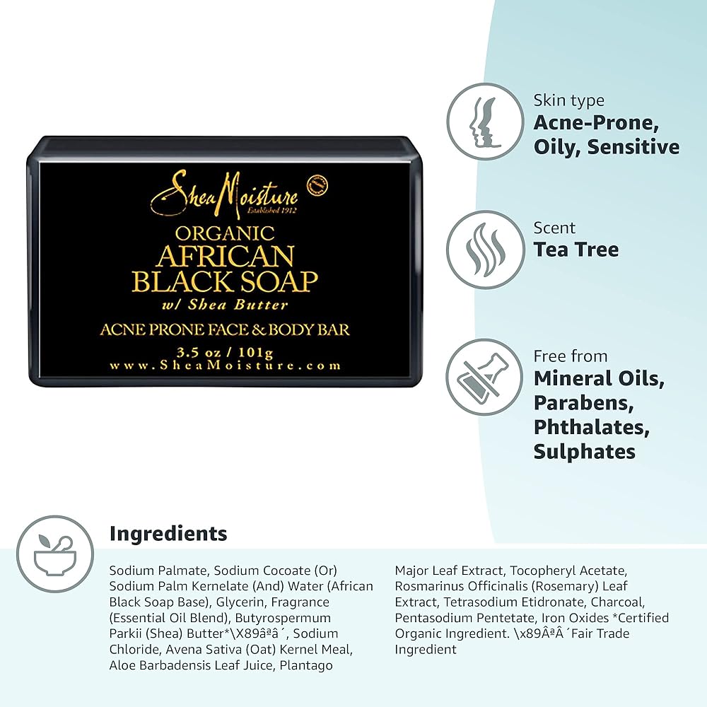 قالب الصابون الأسود الأفريقي للوجه والجسم من شركة SheaMoisture هو منظف للوجه يعمل على تنقية البشرة الدهنية والمعرضة للشوائب. منظف الوجه هذا، الممزوج بمستخلص التمر الهندي، هو غسول رائع لتقشير الوجه. يساعد منظف الوجه الخاص بنا، الممزوج بزيت شجرة الشاي، على تنقية البشرة الدهنية بلطف وإزالة لمعانها. إنه أحد أفضل منظفات الوجه للبشرة الدهنية وغسول الوجه للبشرة المعرضة للشوائب. ضعي غسول الوجه على بشرة رطبة. دلكي بلطف على الوجه والرقبة باستخدام حركات دائرية. شطف جيدا. اتبع ذلك باستخدام التونر المنقي للصابون الأسود الأفريقي. نحن ننتج الخير بشكل مستدام. العناية بالبشرة مصنوعة بحب لك ولجسدك. تعتبر شركة SheaMoisture رائدة في مجال التجارة العادلة من خلال التجارة المجتمعية في الداخل والخارج. تم تركيب منظف الوجه هذا بدون بارابين أو فثالات أو زيوت معدنية أو كبريتات. لقد تم اختباره على عائلتنا لأجيال ولم يتم اختباره على الحيوانات مطلقًا. قصتنا: SheaMoisture هو إرث صوفي تاكر، وهي أم رائدة لأربعة أطفال ورائدة أعمال، باعت زبدة الشيا والصابون الأسود الأفريقي ومستحضرات التجميل محلية الصنع في سيراليون في عام 1912. نحن نكرم رؤيتها من خلال الاستمرار في صياغة زبدة الشيا الخام مصنوعة يدوياً من قبل النساء في أفريقيا. مع كل عملية شراء، فإنك تُظهر دعمًا لمهمتنا المتمثلة في إعادة الاستثمار في مجتمعاتنا.
