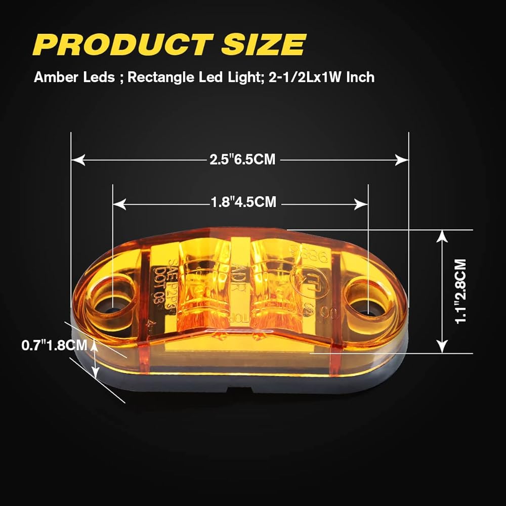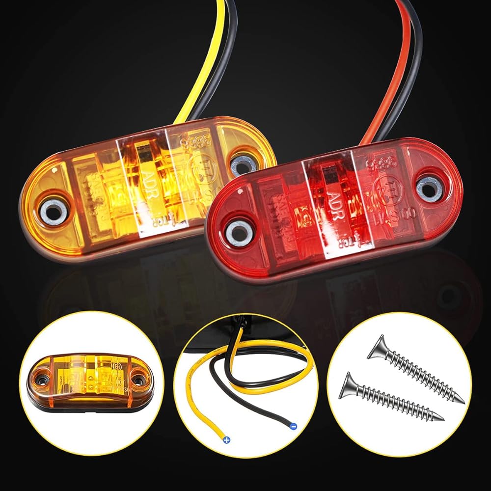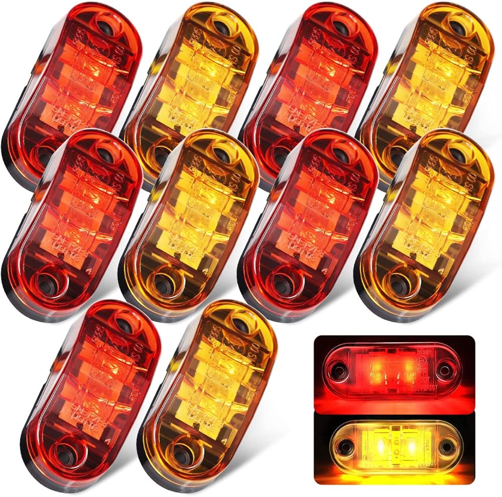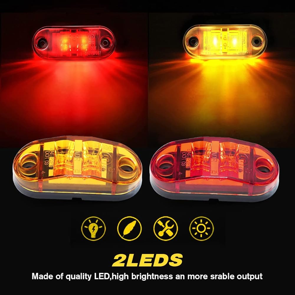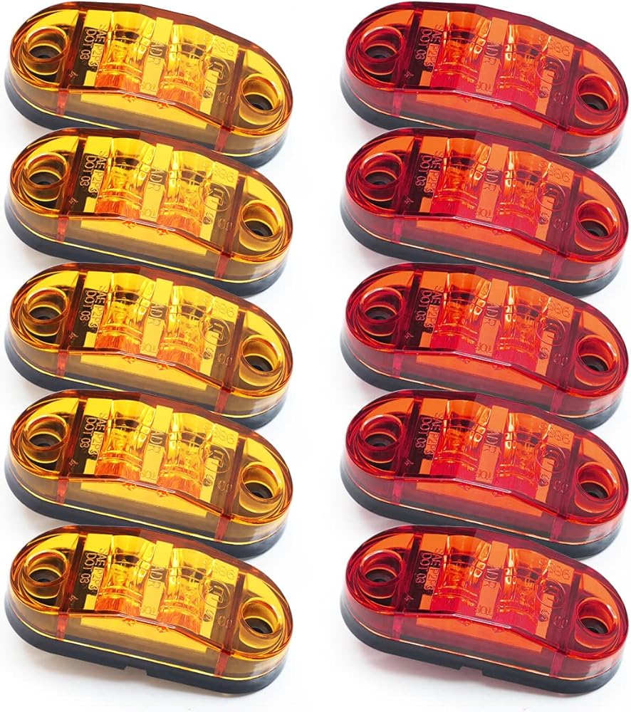 • 🚗Package includes - (5xAmber+5xRed) Oval 2.5" Side Marker/Clearance Lights Auto Side Lamps, 20 PCS screws;