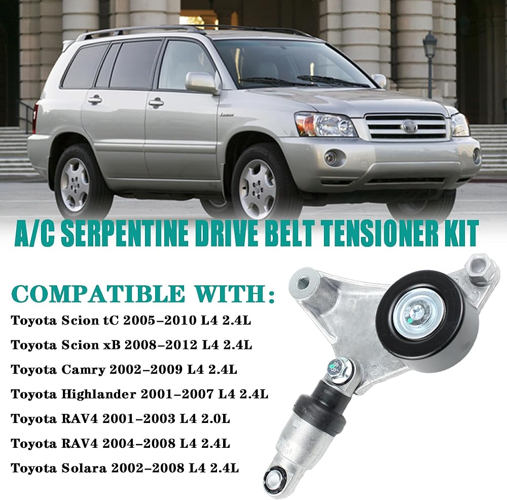 مجموعة شداد حزام القيادة مع بكرة متوافقة مع 2001-2008 Toyota RAV-4 Camry Solara Highlander، 2005-2012 Scion tC xB يستبدل 166200W110 1662028010 1662028040 1662028090 SK89360