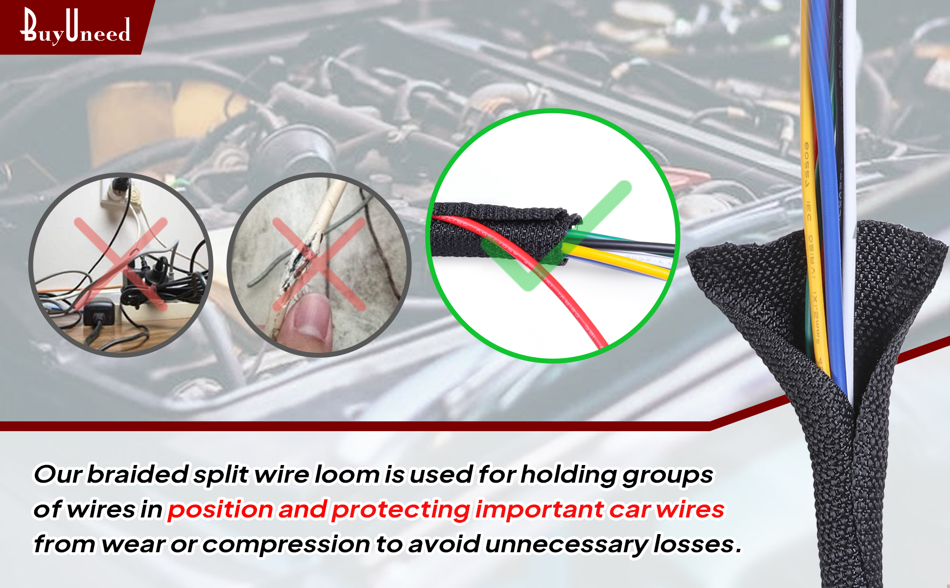 [سهل إضافة وإزالة الكابلات] بالمقارنة مع غلاف الكابل المضفر القابل للتوسيع، تصميم تثبيت الدخول الجانبي المقسم، لا يعد نول الأسلاك عالي الحرارة من BuyUneed من السهل تركيب أحزمة الأسلاك فحسب، بل يوفر أيضًا الراحة للفحص ووضع العلامات والإضافة والإزالة لاحقًا من الأسلاك يسخر. يعد خيارًا رائعًا لحماية سلك السيارة/المنزل/المكتب.