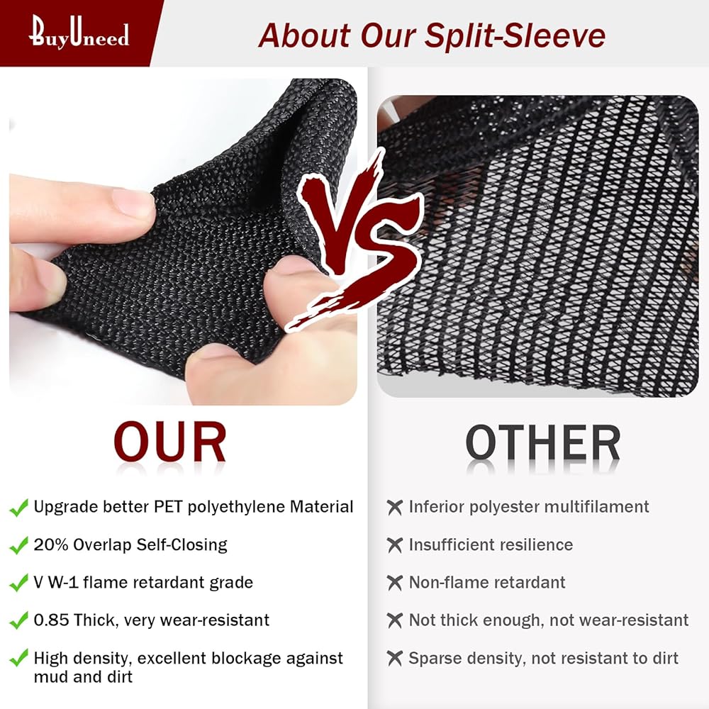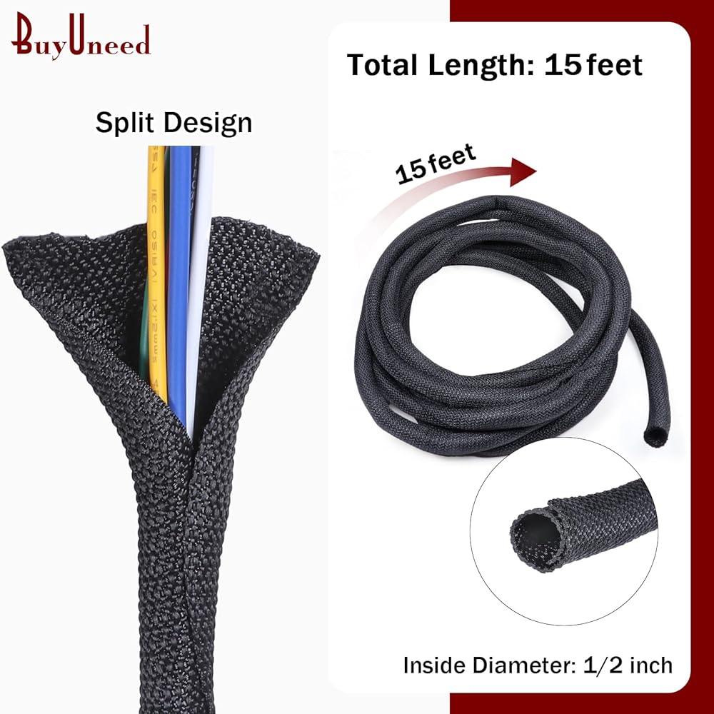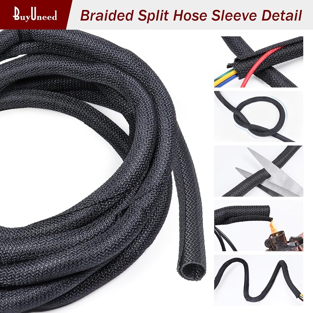 [BuyUneed Split Wire Hose Sleeve] غطاء السلك مصنوع من خيوط بوليستر منسوجة بدقة. مع هيكل لف ذاتي الإغلاق متداخل بنسبة 20% وتصميم تثبيت مدخل جانبي مقسم، يسهل إضافة وإزالة/إدارة وتجميع وإخفاء/تكيف مثالي للكابل/السلك/الخرطوم غير المنتظم. خلق مساحة نظيفة ومرتبة ومنظمة.