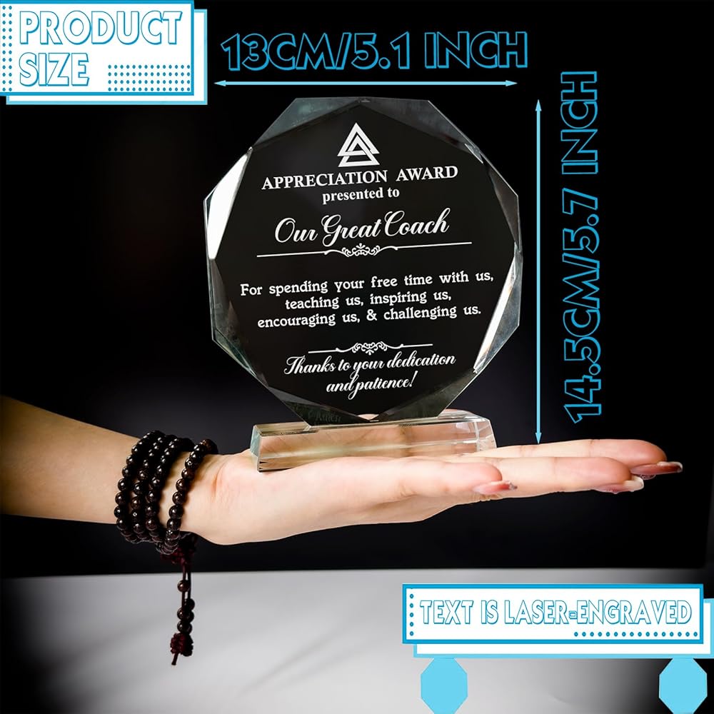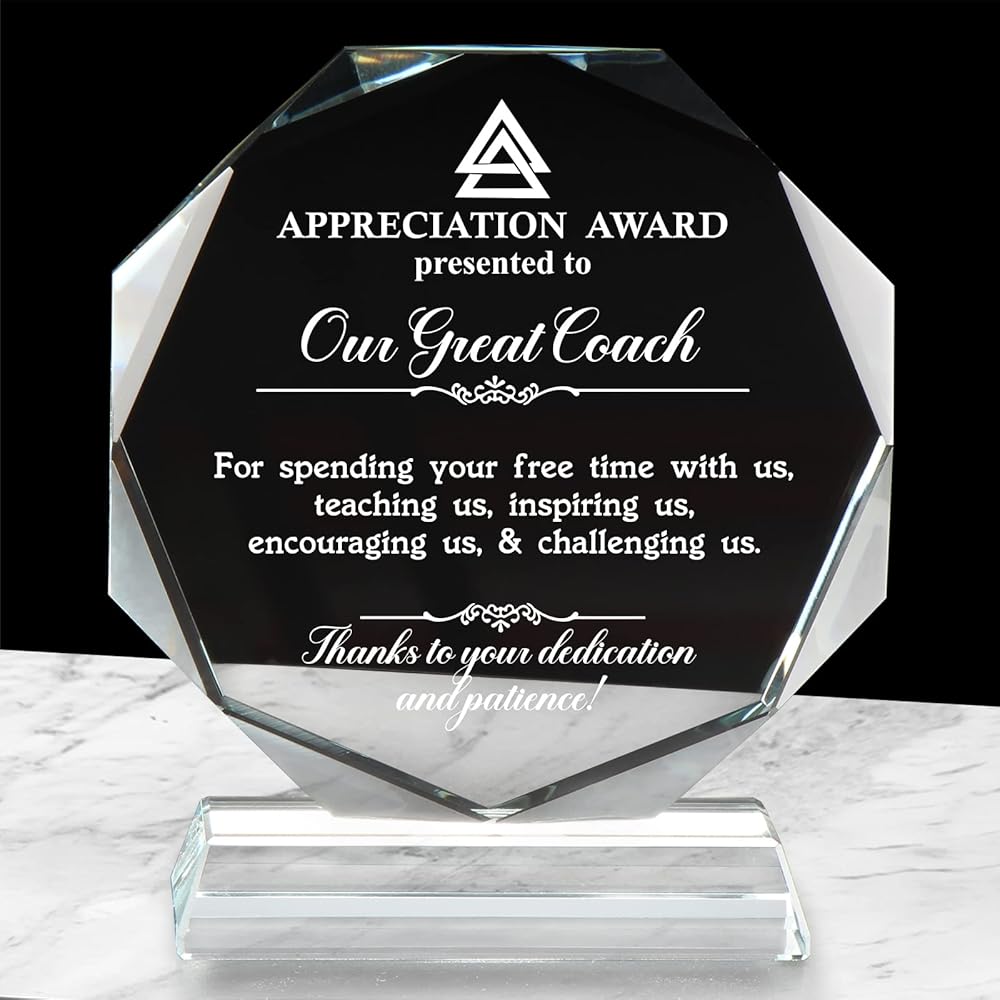 Imparting knowledge requires a wonderful balance between compassion, enthusiasm, and expertise. Give the educators, administrators, counselors, and coaches in your world the thanks they deserve with an incredibly stunning glass appreciation plaque. If you want to thank the world's best coach with a gift that's meaningful and will stand the test of time, consider the Best Coach Appreciation Plaque. It's stylish and allows for ample engraving to really make a unique appreciation gift. The Best Coach Appreciation Plaque has both an appealing aesthetic and meaning. The coach in your life is sure to love this gift.