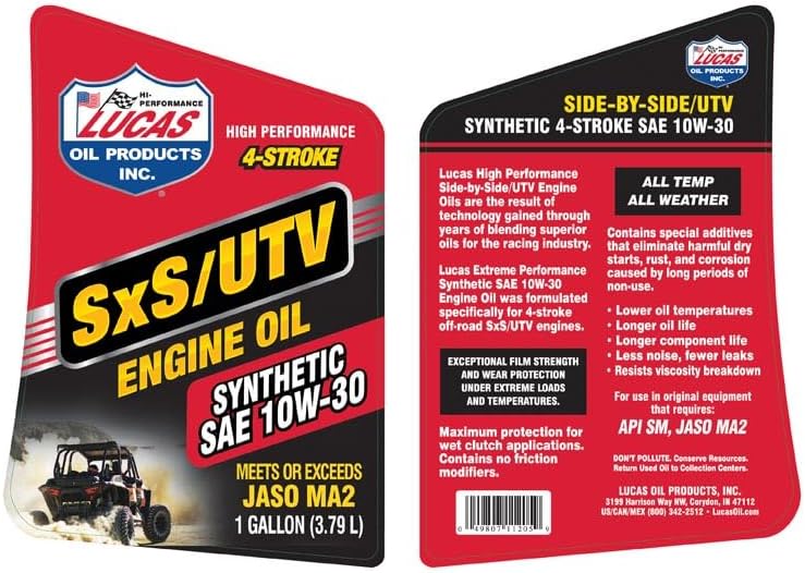 Lucas Oil 11209 Synthetic SAE 5W-50 SXS Engine Oil/4x1/Gallon