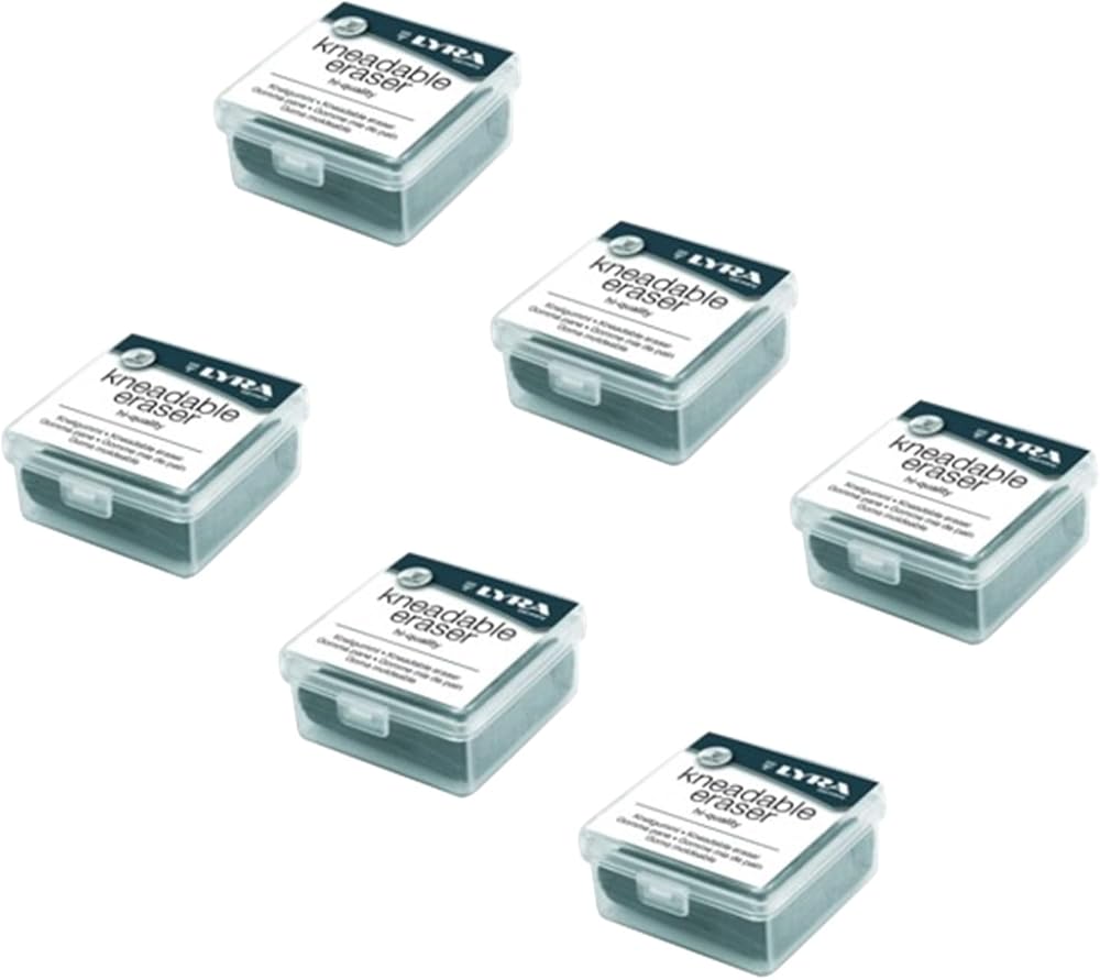 The perfect drawing eraser choice for artists, sketching pencils, drawing supplies, charcoal, pencil and pastel work to smooth and polish. For cleaning slides and final drawing touch-ups, This paste eraser comes with plastic storage case for easy storage after use, sold in a pack of 6 Kneadable