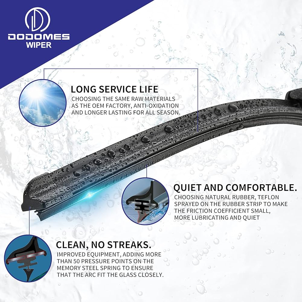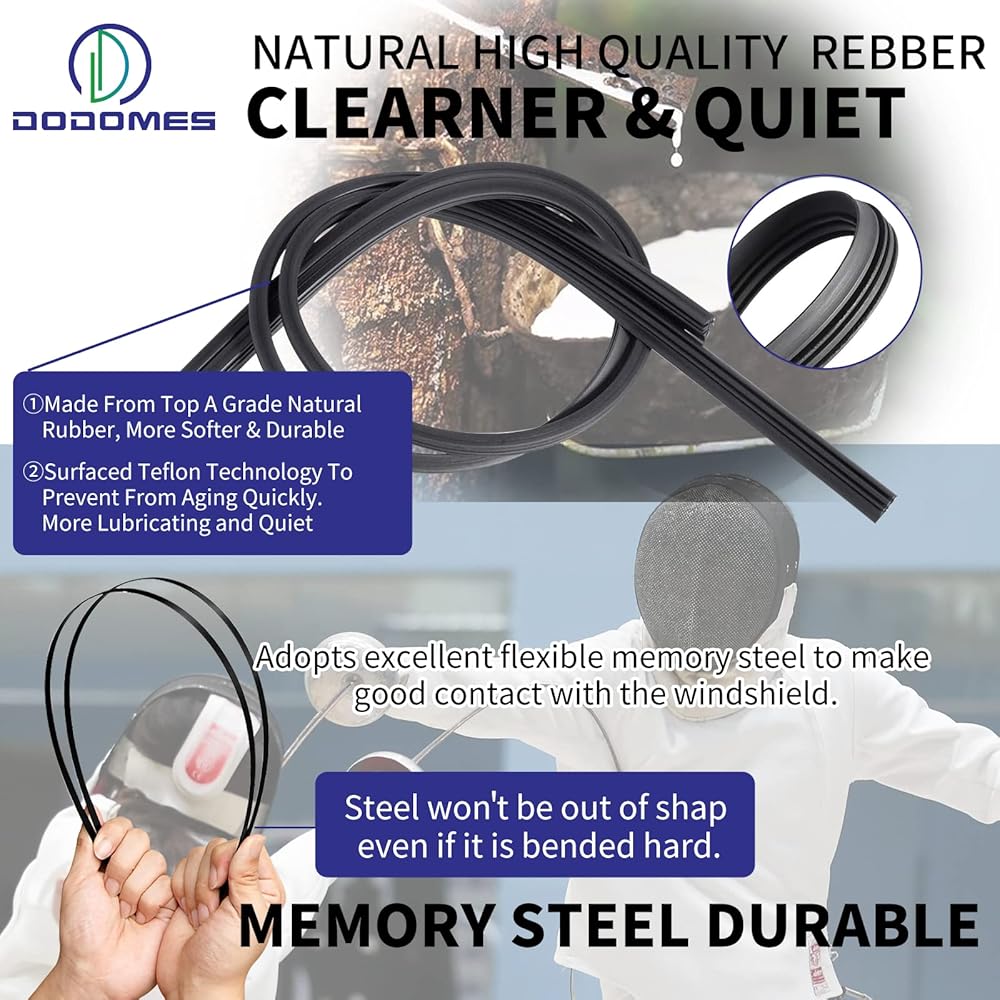 تصميم نوع المصنع الأصلي، وهو نفس مادة المصنع الأصلية، يتمتع بالطبع بأداء ممتاز في جميع الظروف الجوية، كما أن الشفرة المطاطية الطبيعية تمامًا تسمح بالتشغيل الصامت وأقصى عمر طويل.