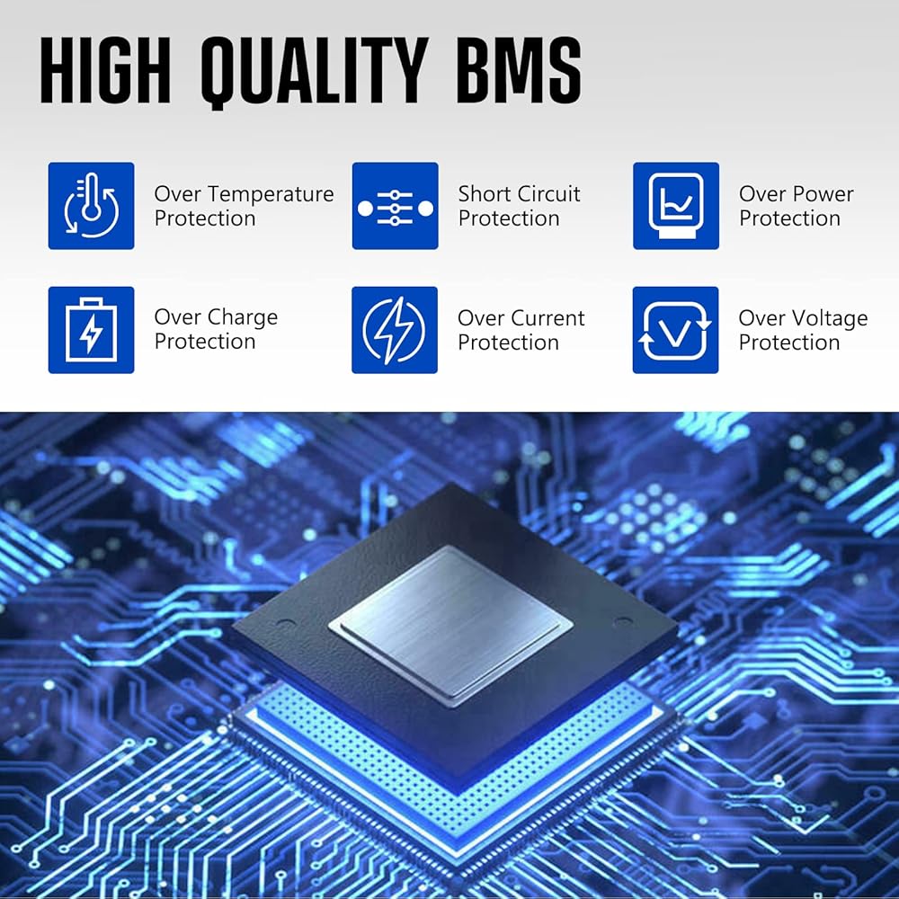 نظام إدارة المباني المتقدم: على عكس نظام إدارة المباني الأدنى لبطاريات LiFePO4 الأخرى، يوفر نظام إدارة المباني الخاص ببطارية فوسفات حديد الليثيوم تفريغًا مستمرًا أصليًا بقدرة 20 أمبير، مما يمكّن بطارية الليثيوم ذات الدورة العميقة هذه من التفوق في الأداء. يتضمن نظام إدارة المباني لحزمة بطارية الليثيوم أيون أيضًا موازنة ذكية ومراقبة درجة الحرارة/الجهد، وقد تم تصميم بطارية LiFePO4 هذه أيضًا بمعدل تفريغ ذاتي منخفض.
